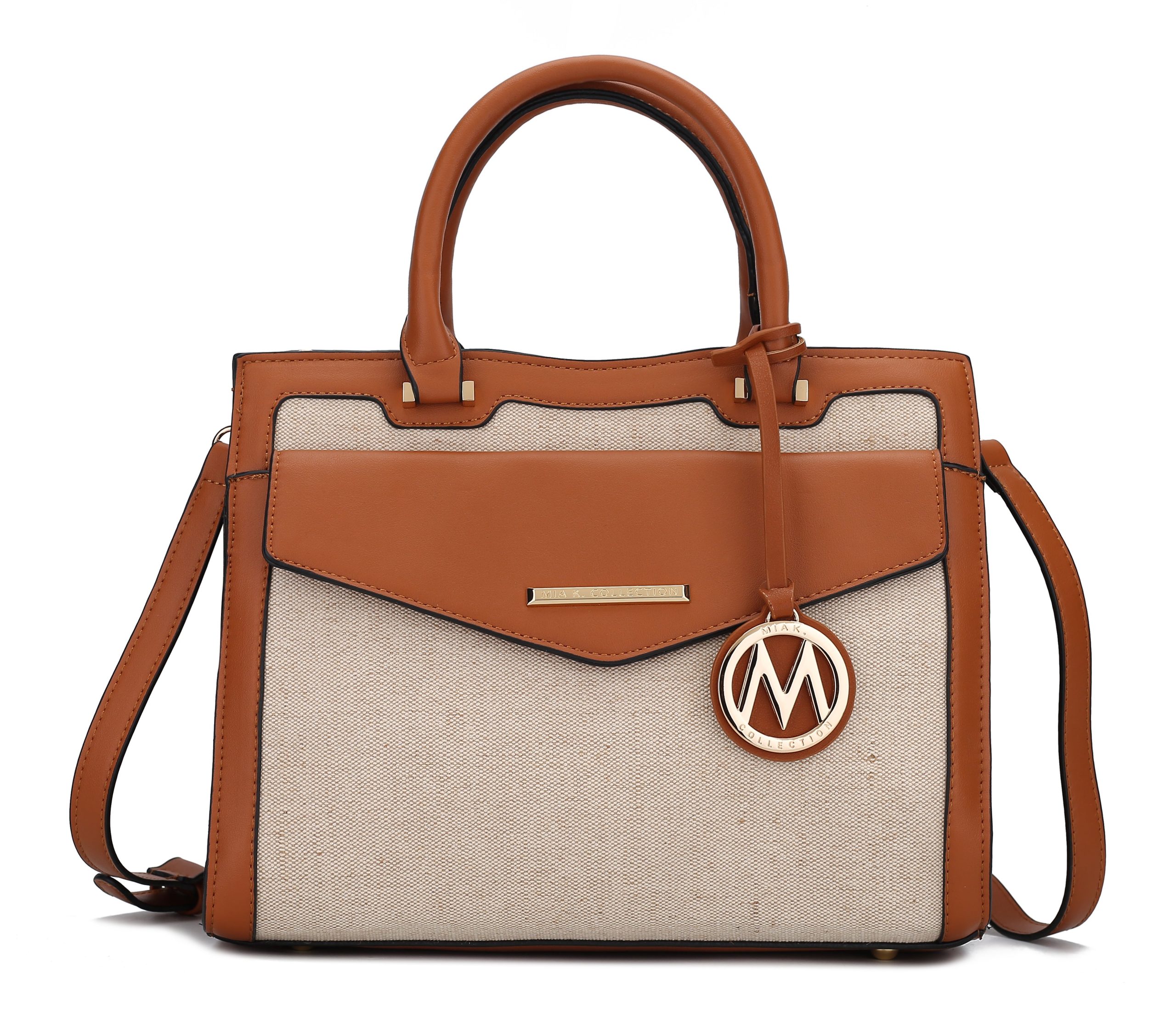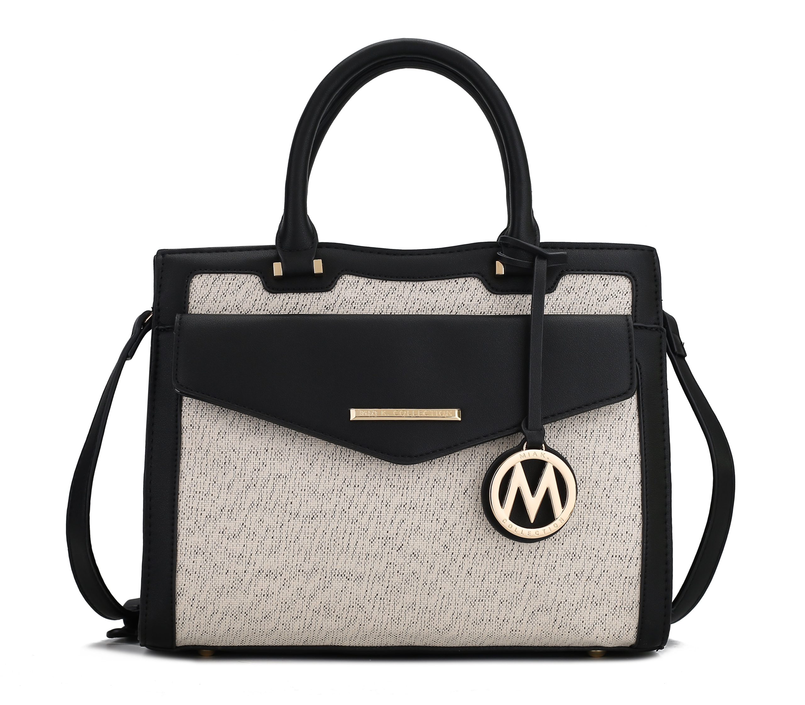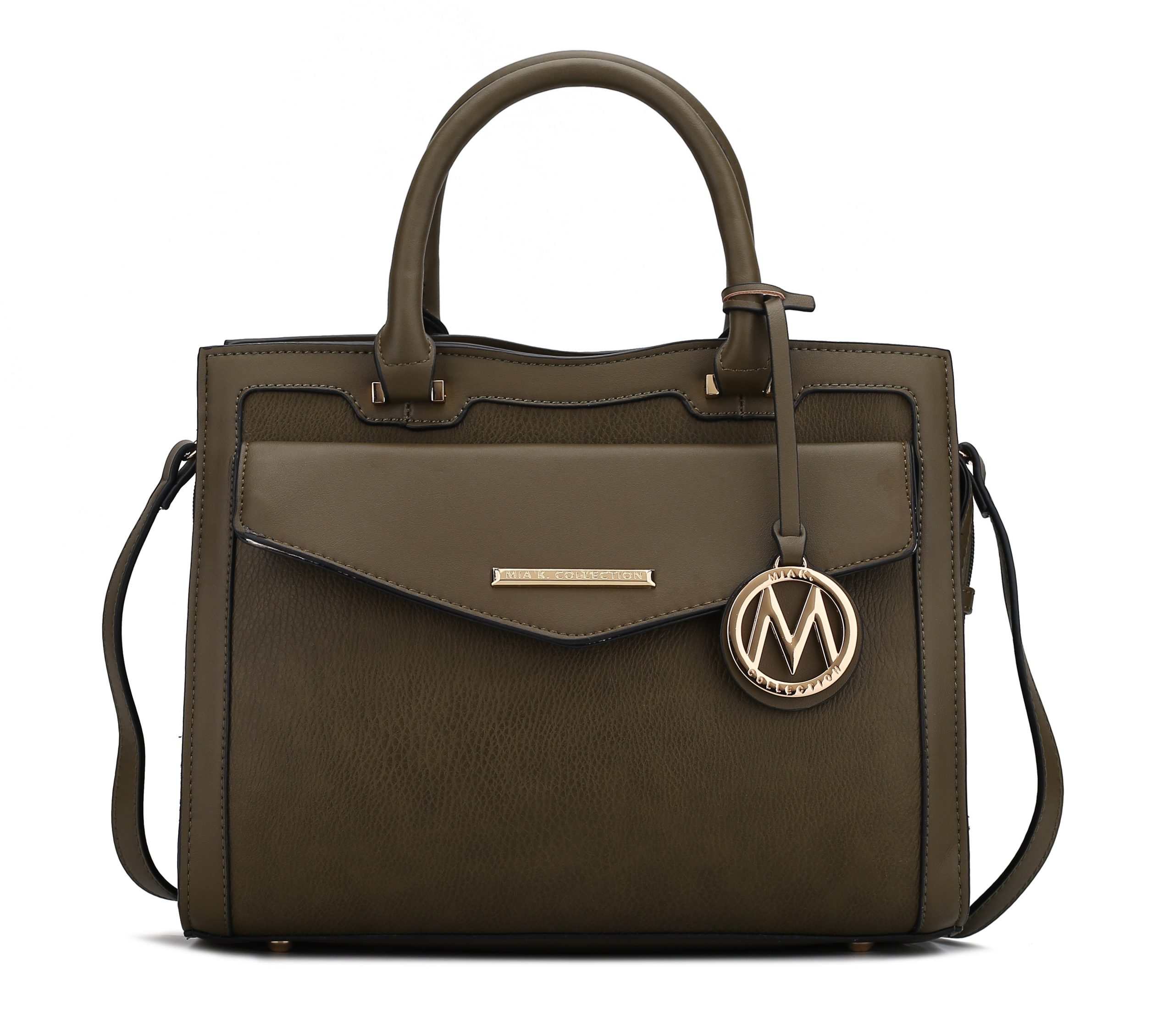 Pockets: 1 exterior front pocket. 1 exterior zipper pocket. 2 interior pockets. 1 interior zipper pocket with our signature Mia K. Collection Plate.