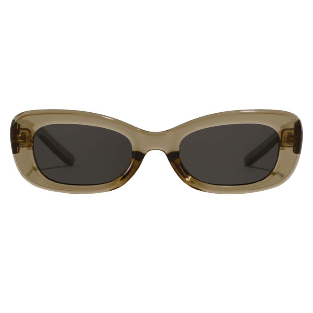 Anya Polarized Sunglasses feature?a rounded rectangular frame with silver star embellishments. Available in black. black/brown. and transparent olive green.?