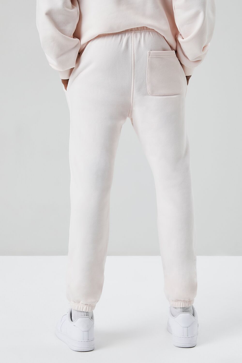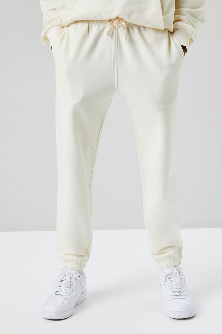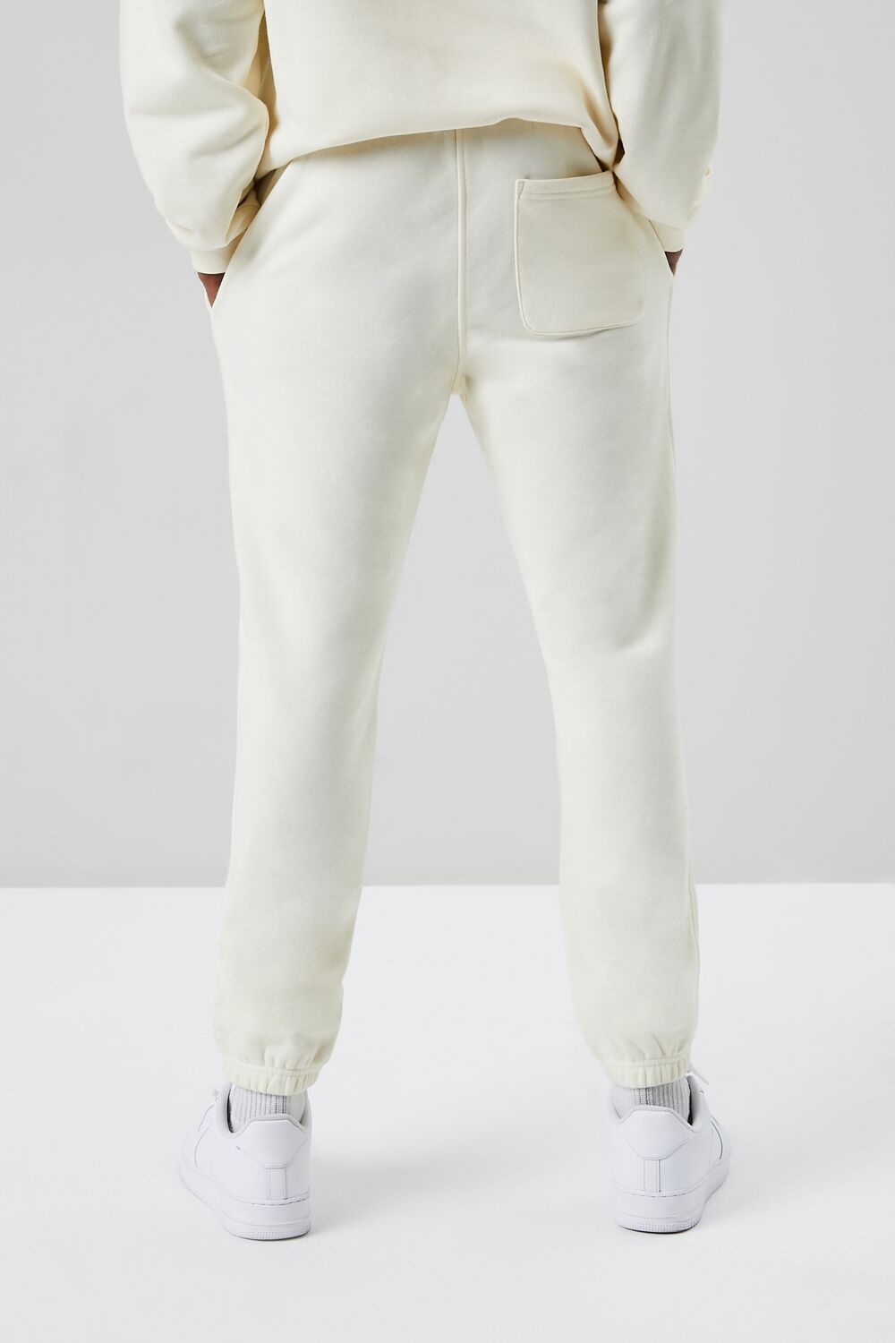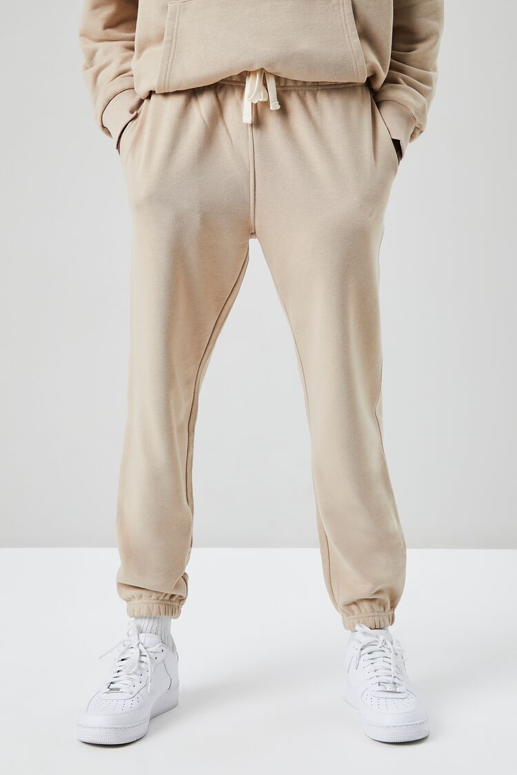 A basic knit pair of joggers featuring a drawstring waist. on-seam pockets. elasticized trim. and a back patch pocket.