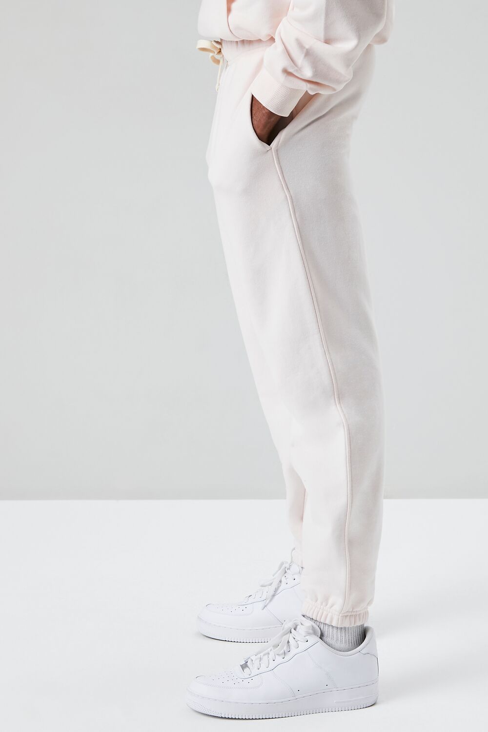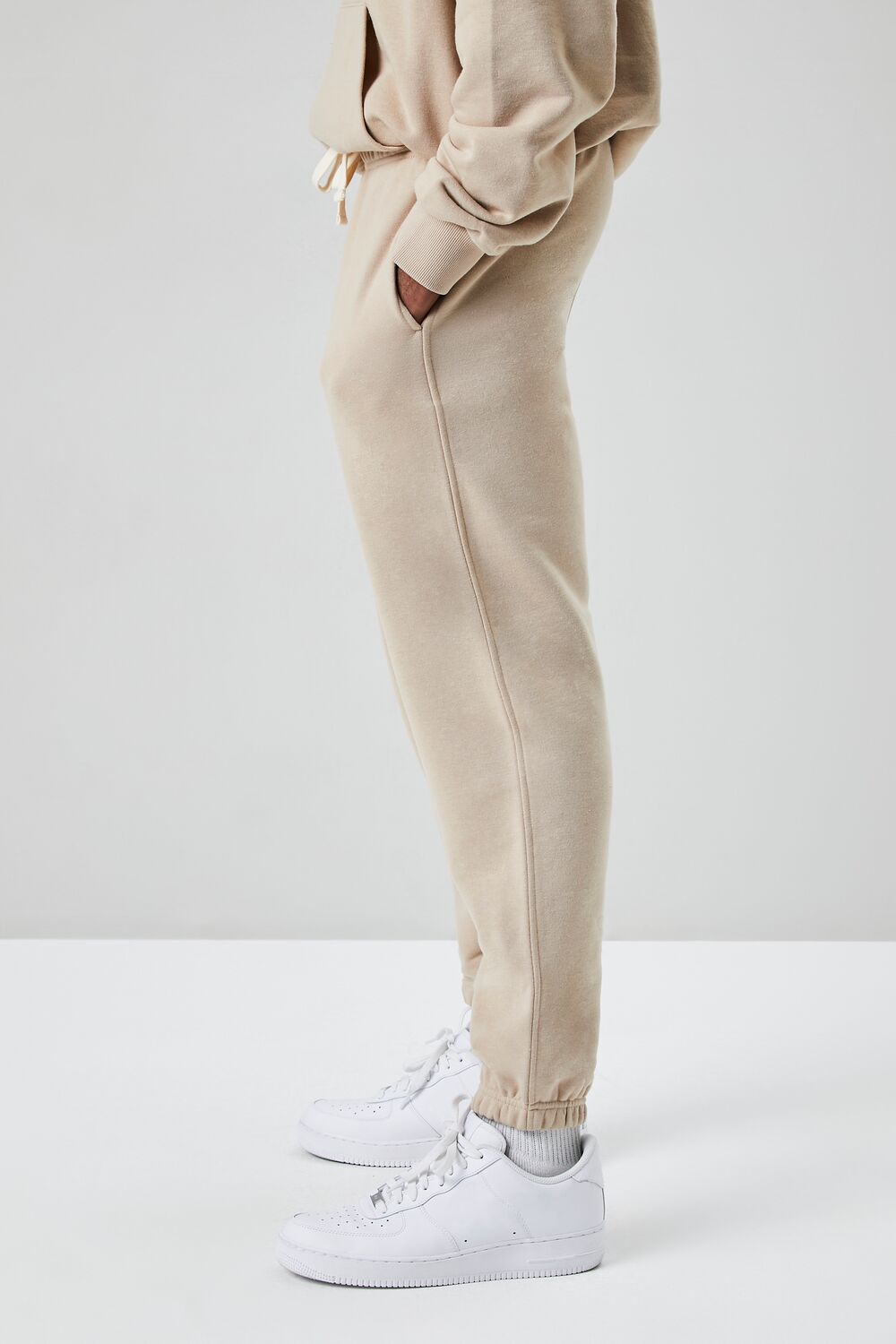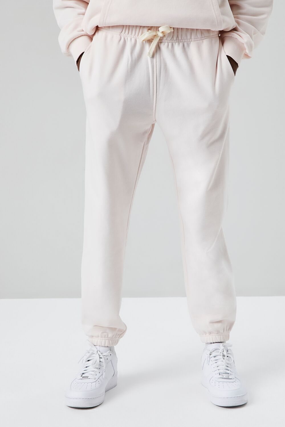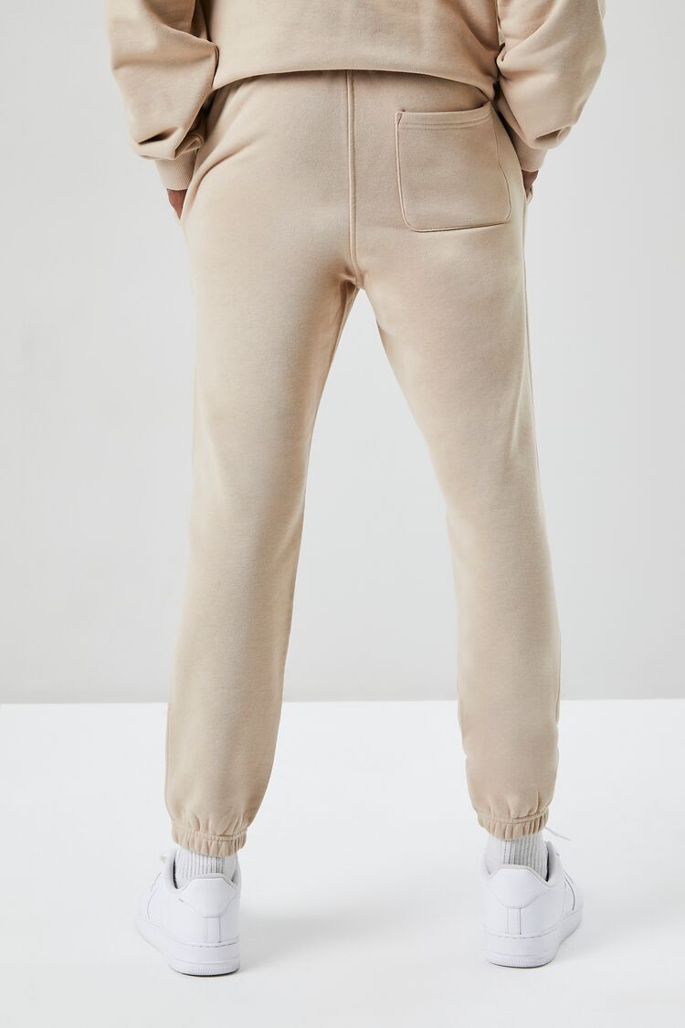 A basic knit pair of joggers featuring a drawstring waist. on-seam pockets. elasticized trim. and a back patch pocket.
