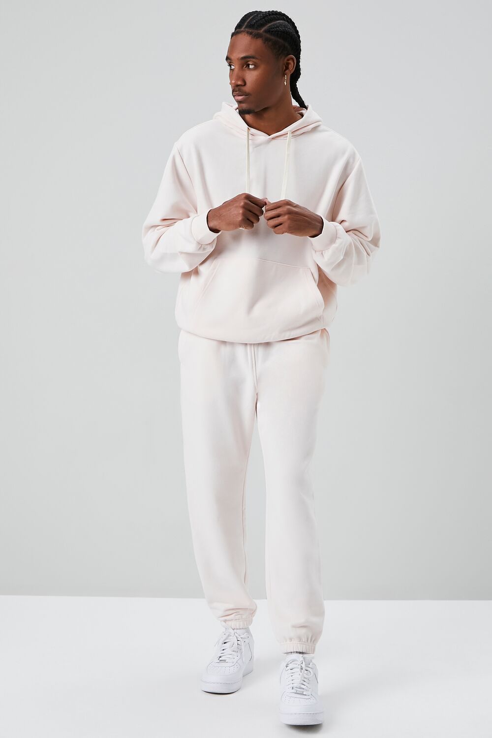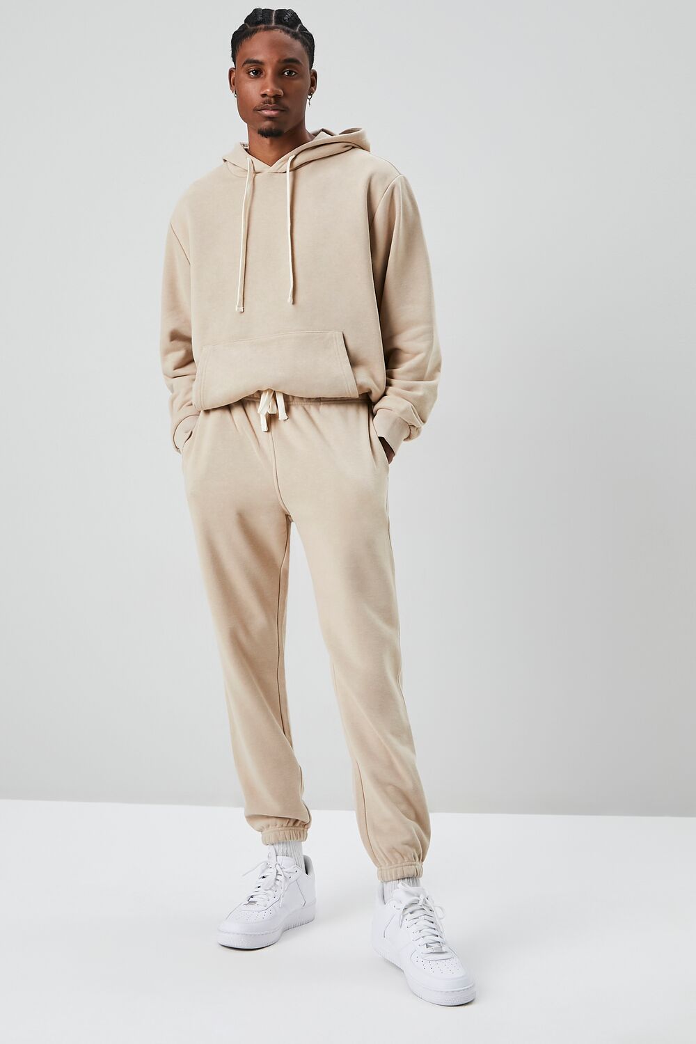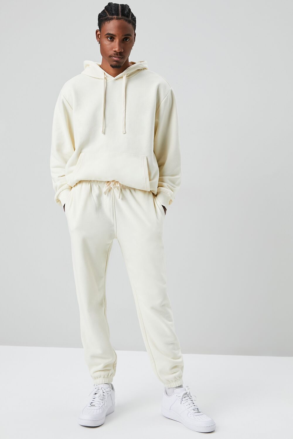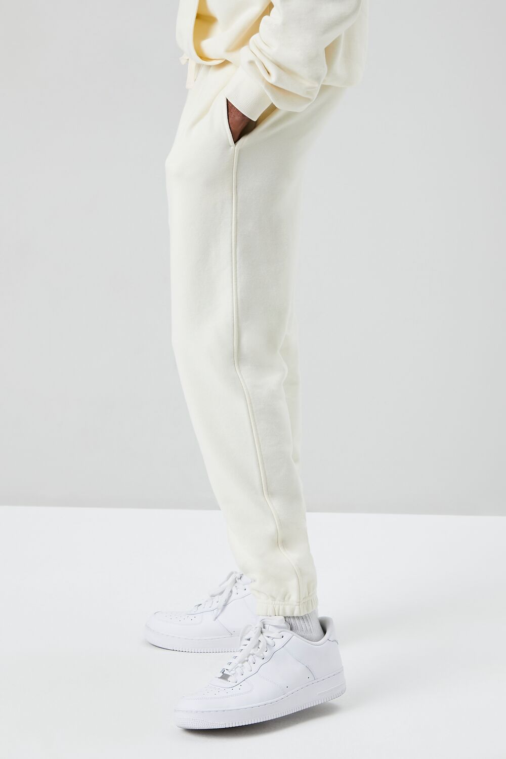 A basic knit pair of joggers featuring a drawstring waist. on-seam pockets. elasticized trim. and a back patch pocket.