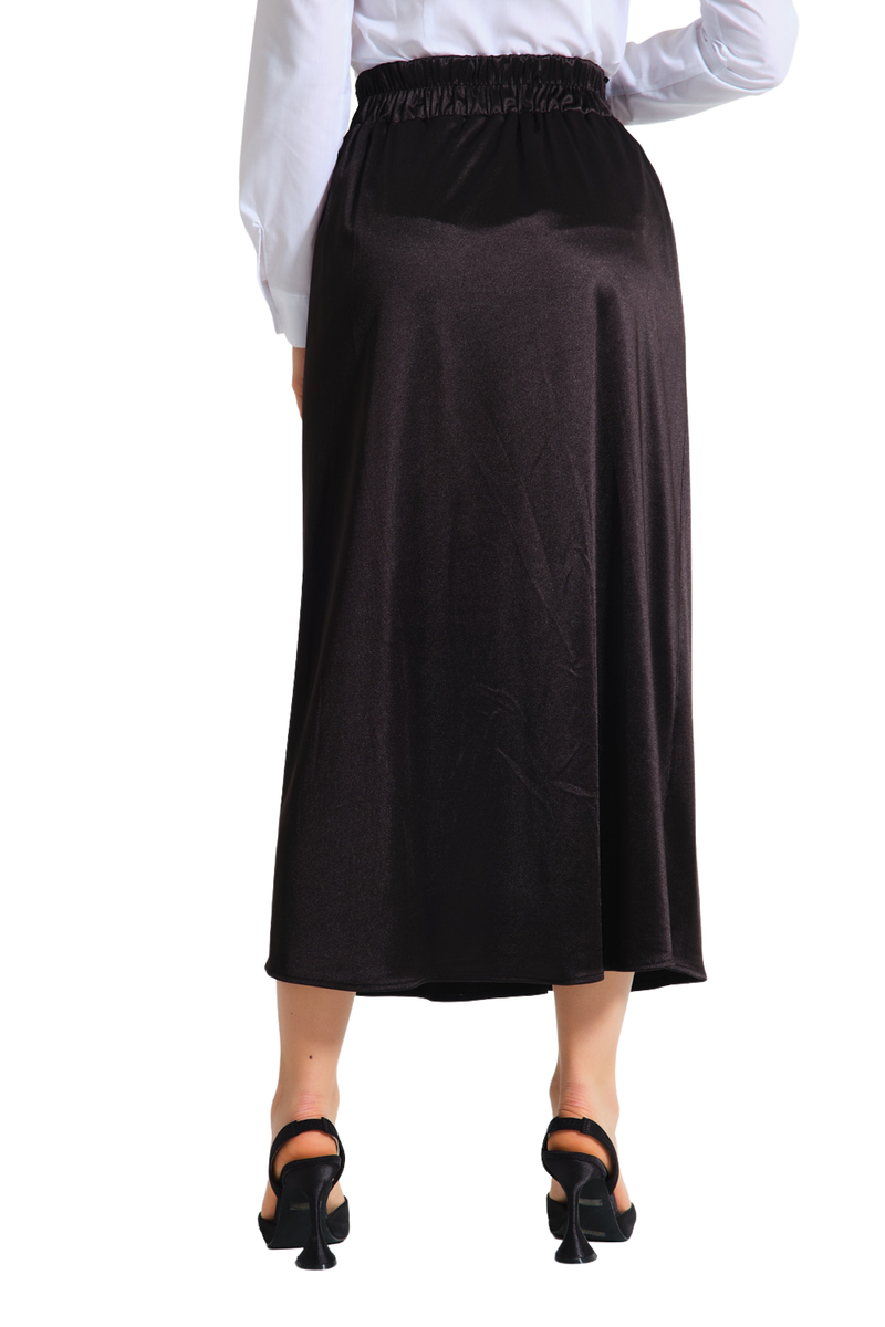 Mizalle Waist Pleated Long Black Satin Skirt 100% POLYESTER Height: 97 cm. Waist: 89 cm. Hips: 99 cm
