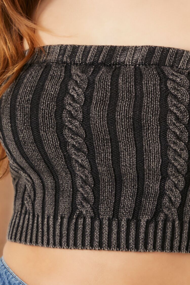 A cable sweater-knit tube top featuring a straight-cut neckline and back. allover mineral wash. and a cropped hem.