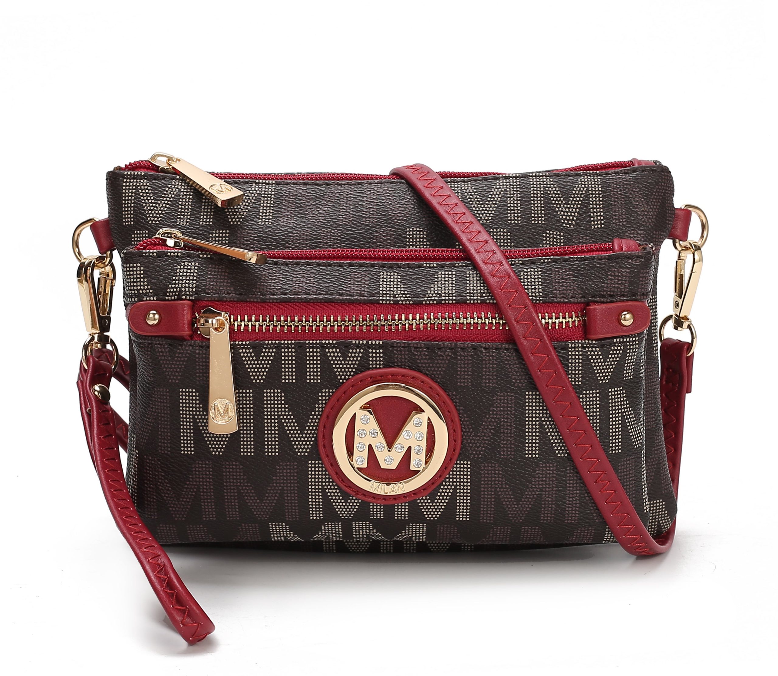 Pockets: Interior features double compartments including a wide slip-in pocket and a wall zipper pocket