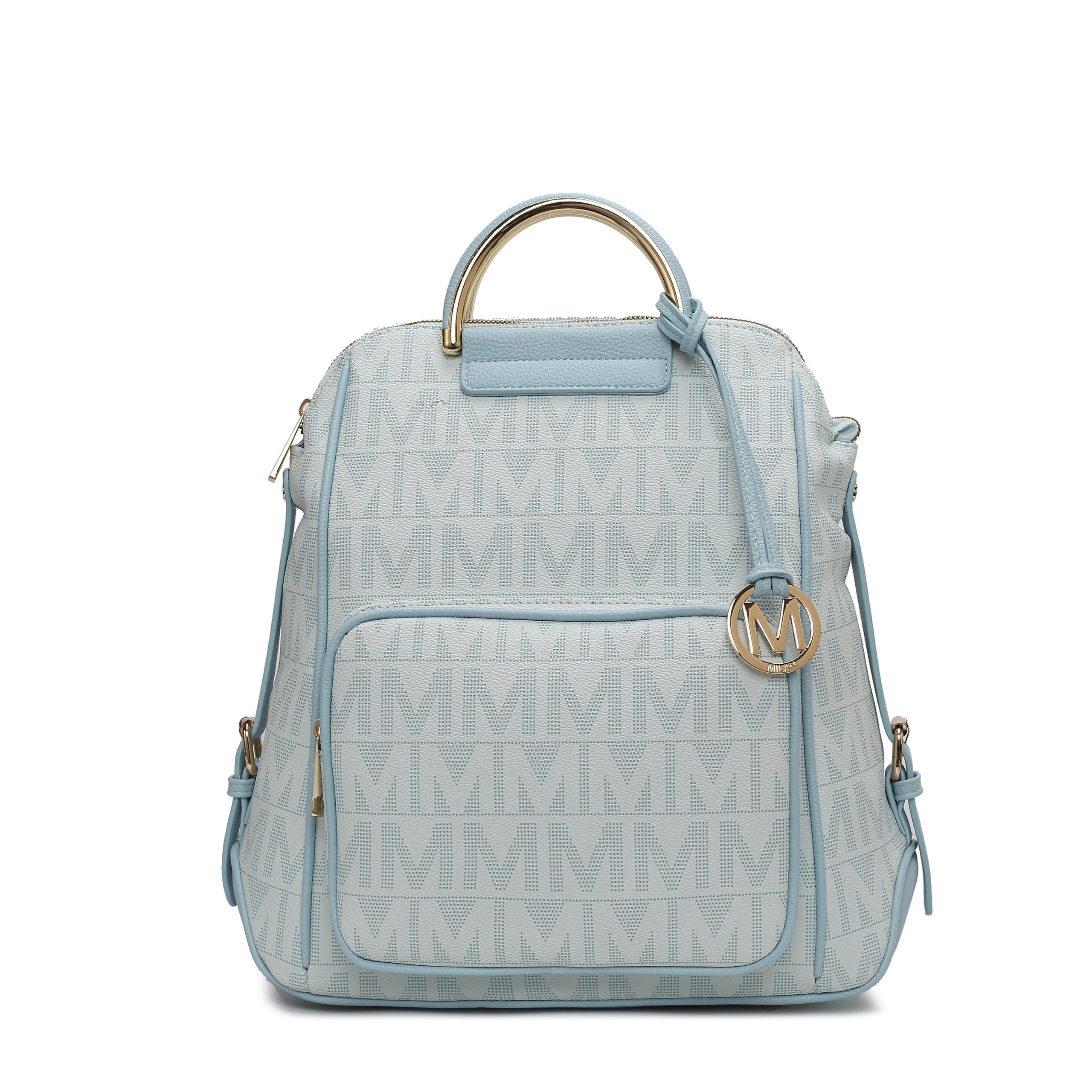 The exterior features a front zippered pocket