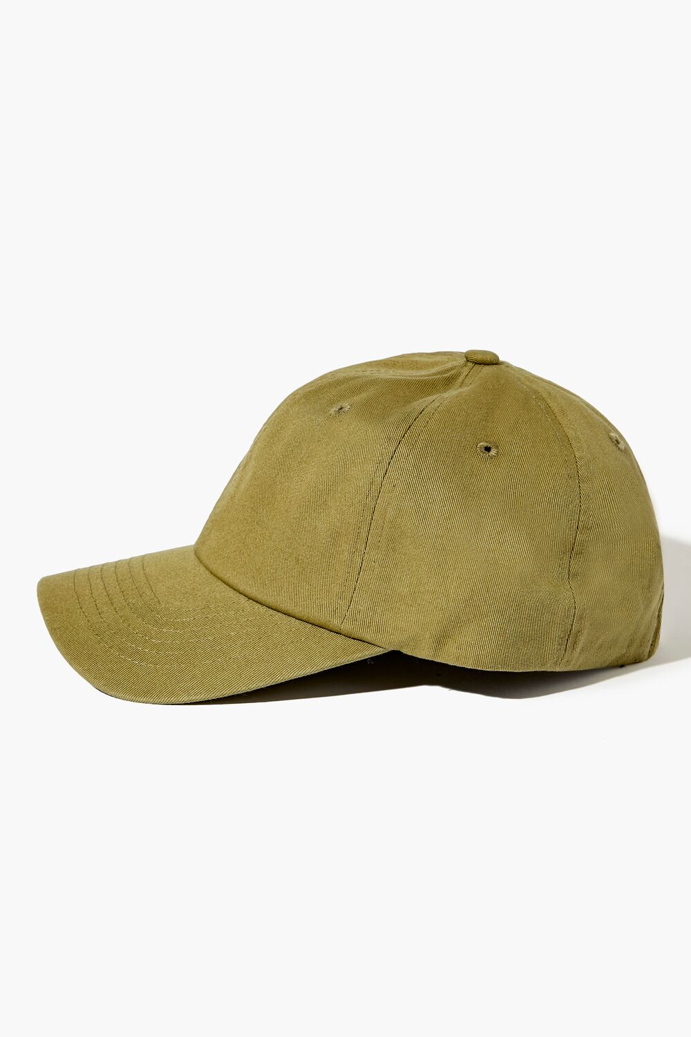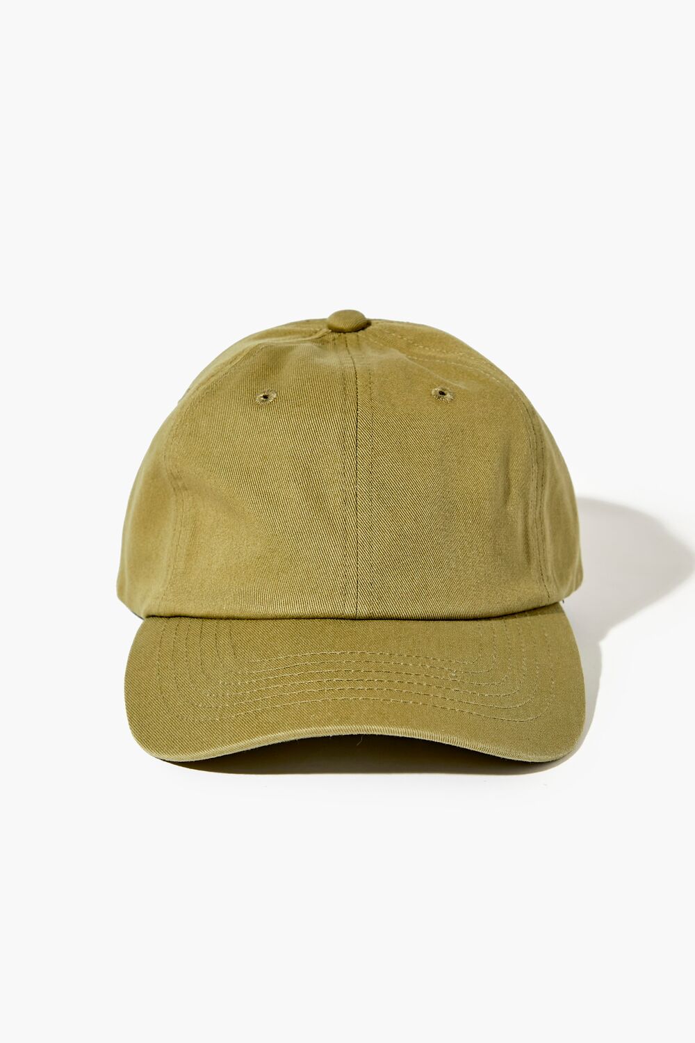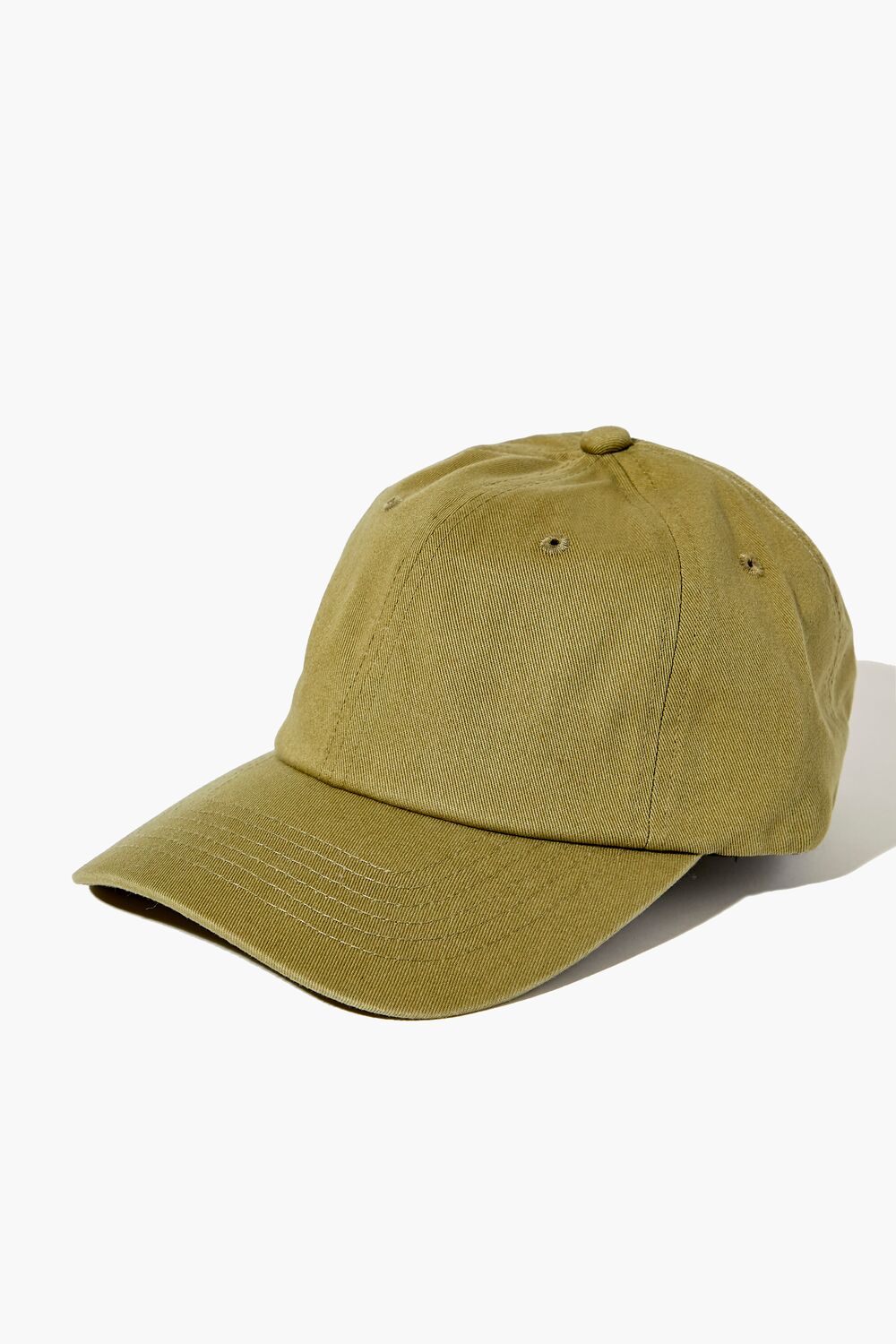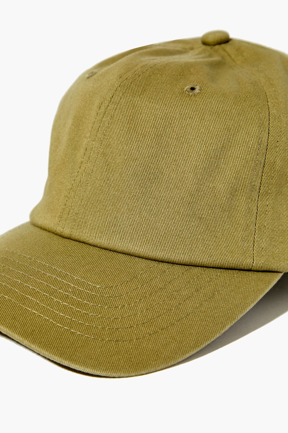 A woven baseball cap featuring a button top. eyelets. and curved brim.