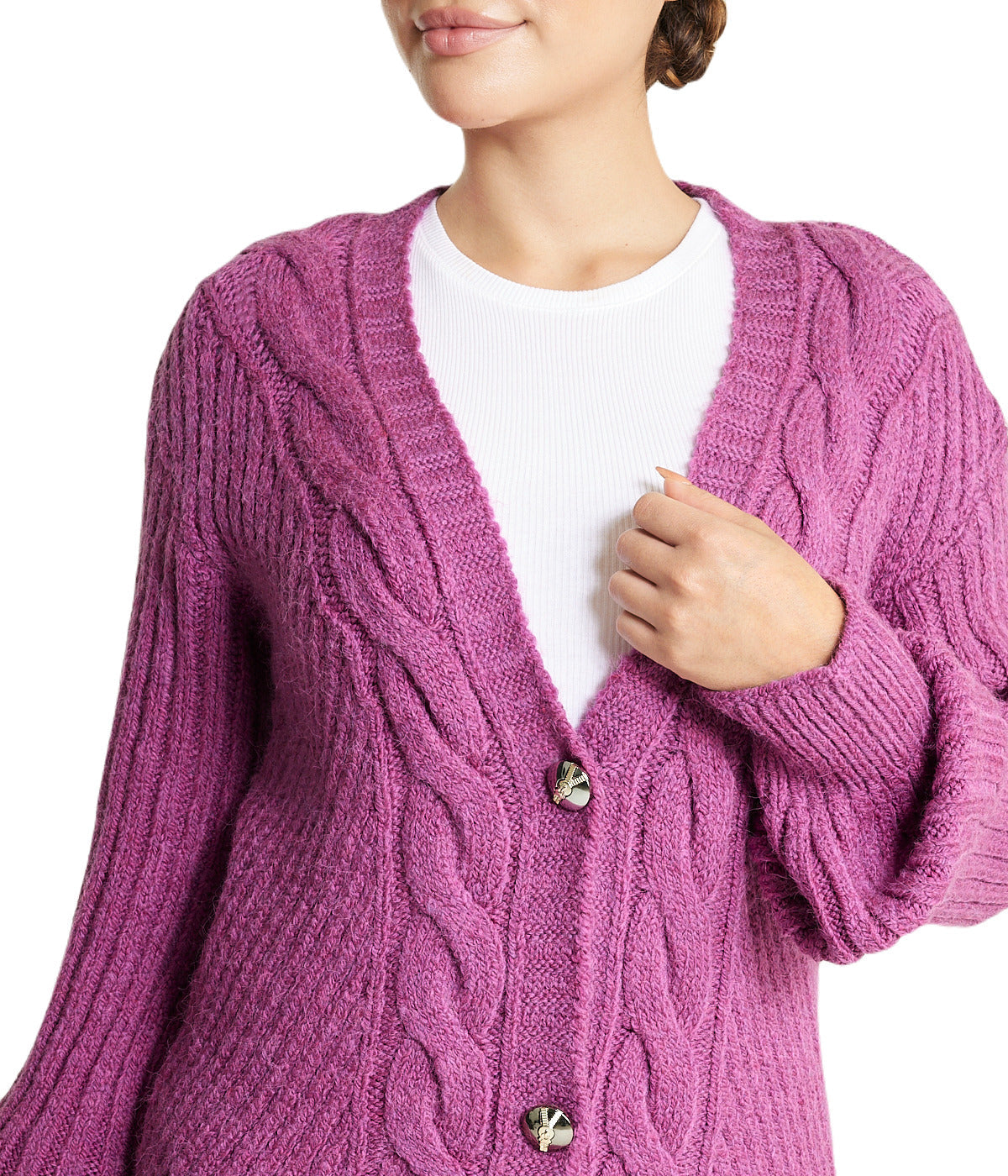 Stay cozy and stylish this season with our Ladies’ Cable Cardigan made of an acrylic blend. This sweater is designed to provide the ultimate combination of comfort and style. making it a must-have for your wardrobe. This garment runs small. please size up.