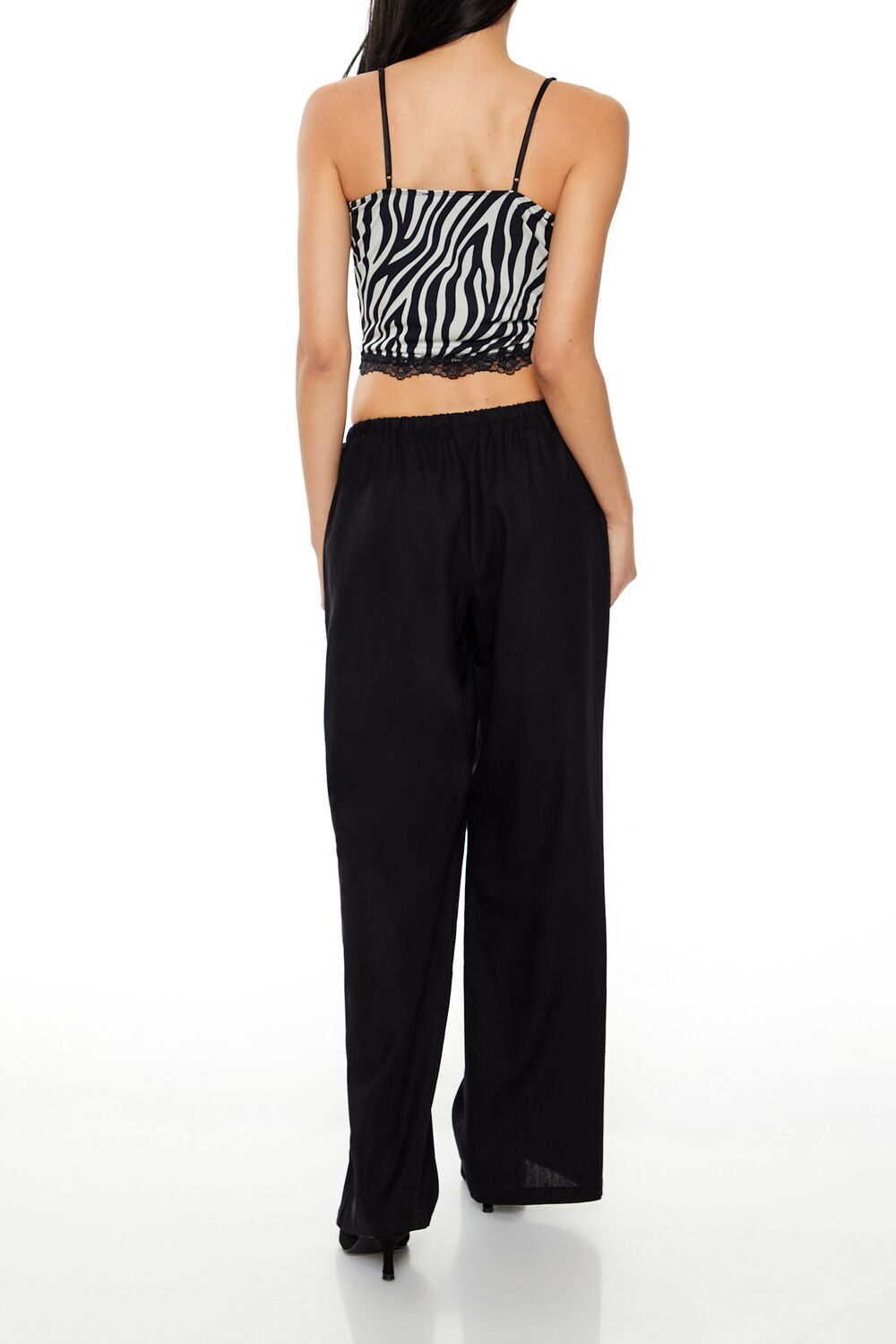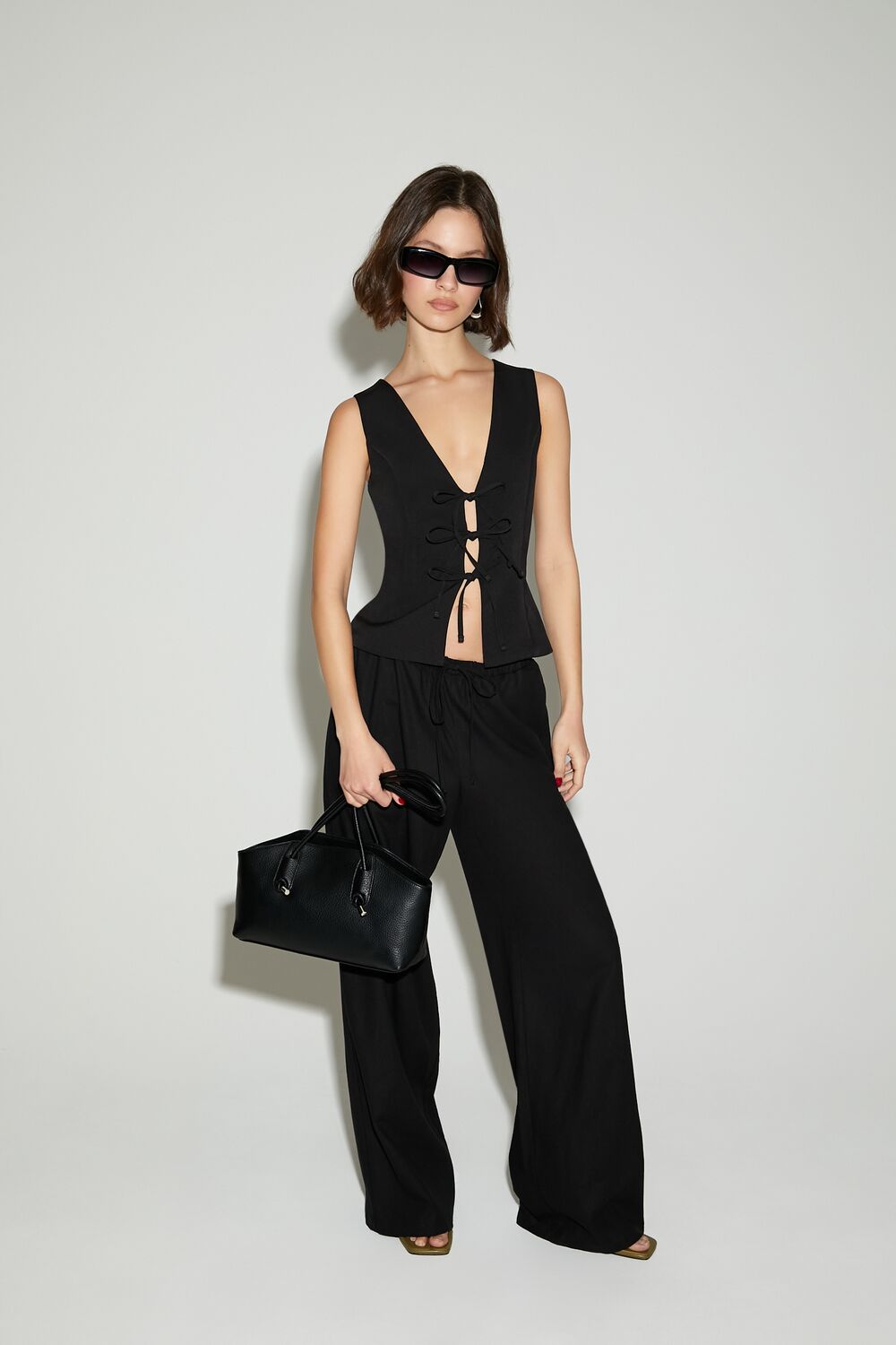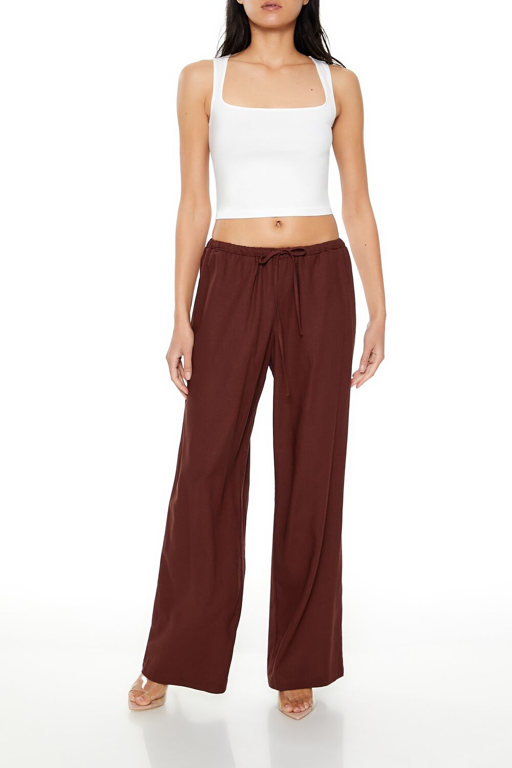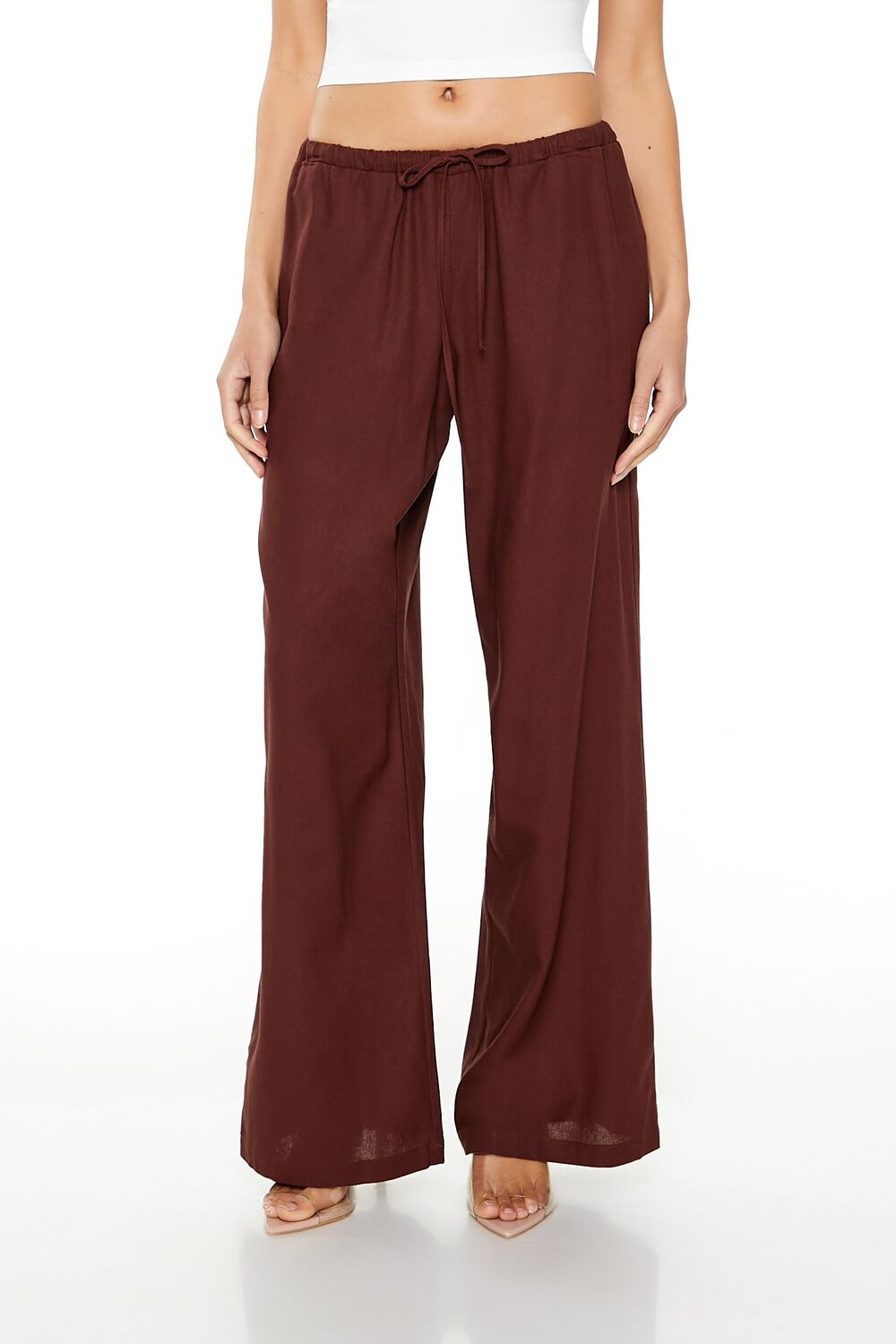 A pair of woven pants featuring a drawstring mid-rise waistband and wide leg.