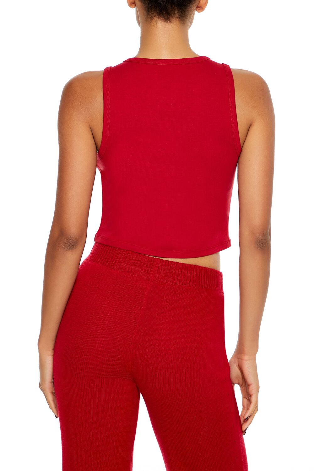 A jersey knit tank top featuring a round neckline. chest ‘Emotional Baggage’ embroidered text. and cropped hem.