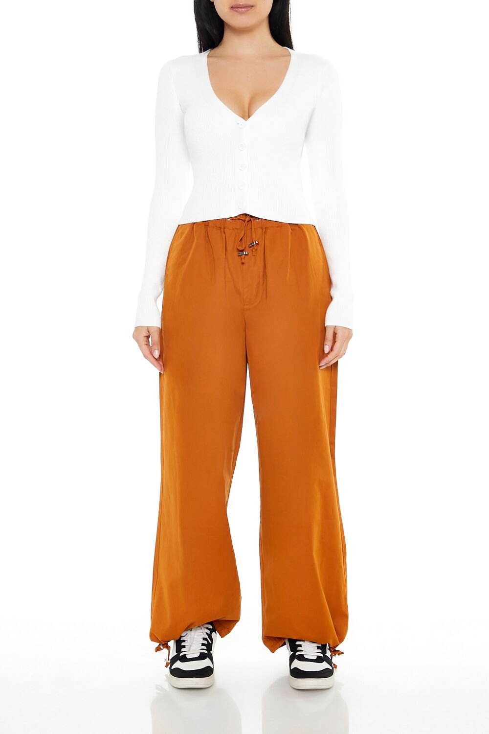 A knit cardigan sweater featuring a plunging V-neckline. button-front closures. an allover ribbed construction. long sleeves. a cropped hem. and fitted silhouette.