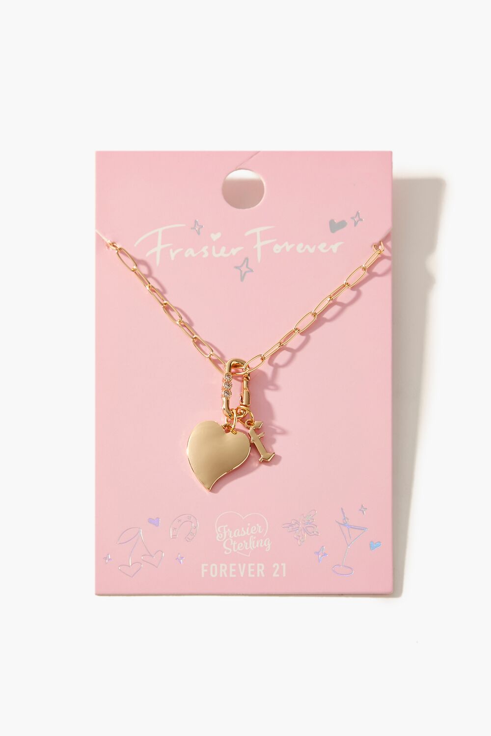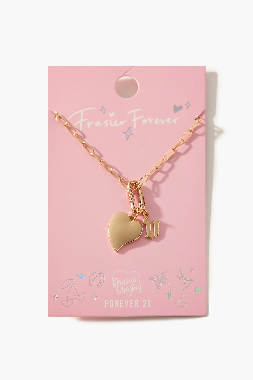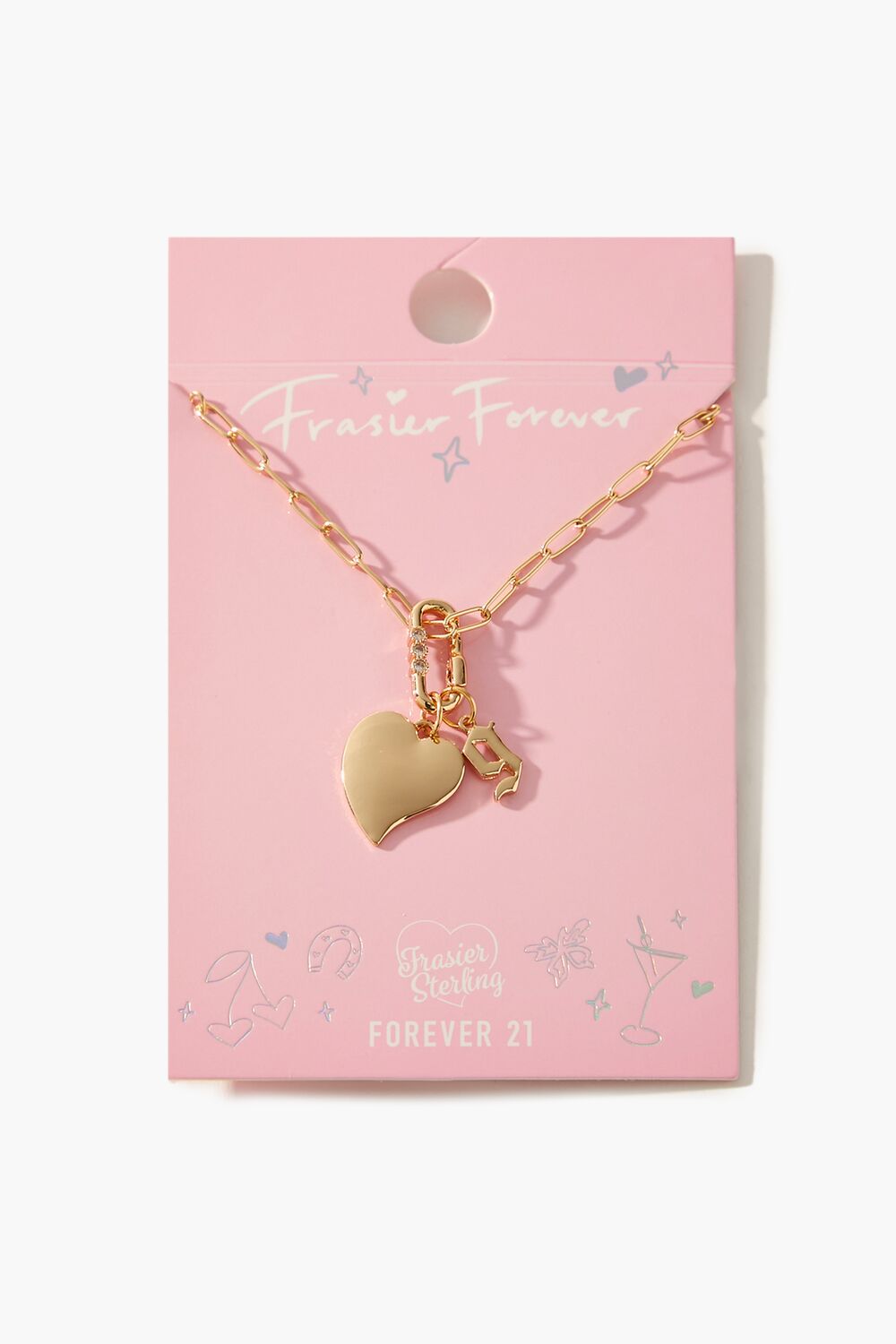 From our Frasier Sterling x Forever 21 collection. this high-polish choker necklace features an anchor chain. heart and initial charms. rhinestone embellishments. and a lobster clasp closure.