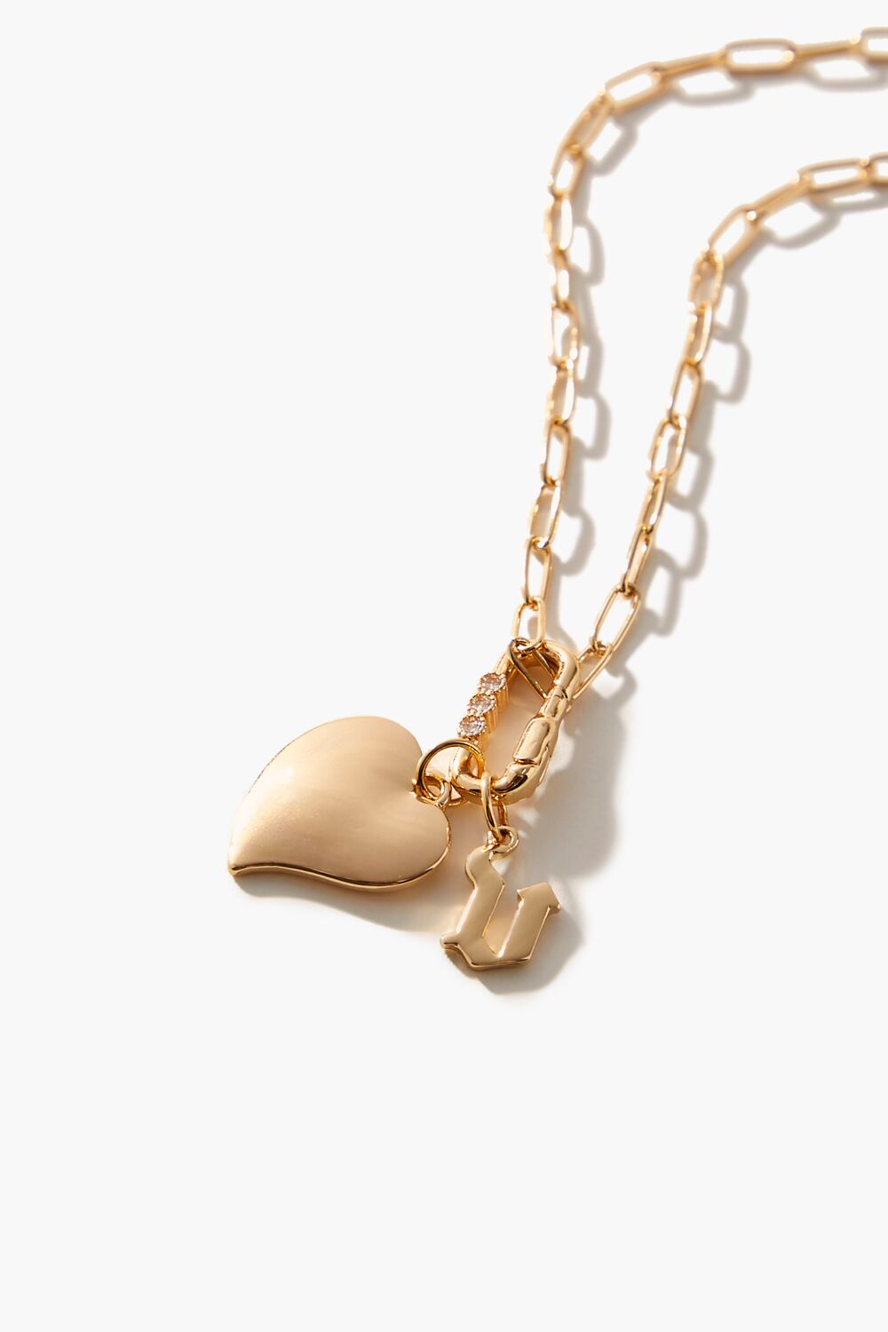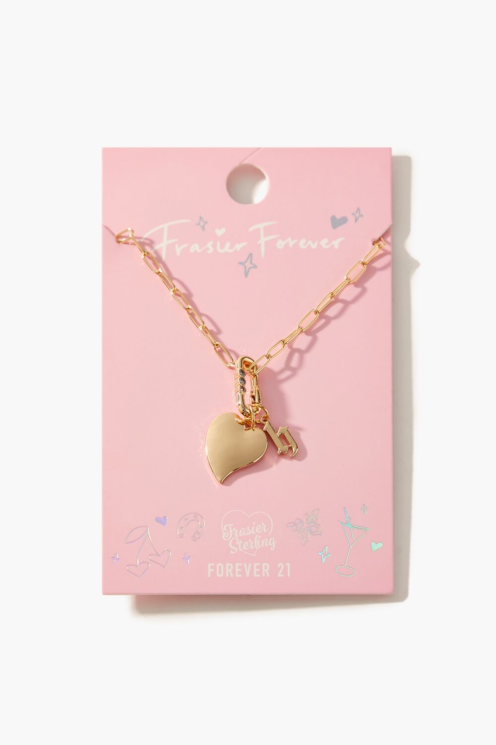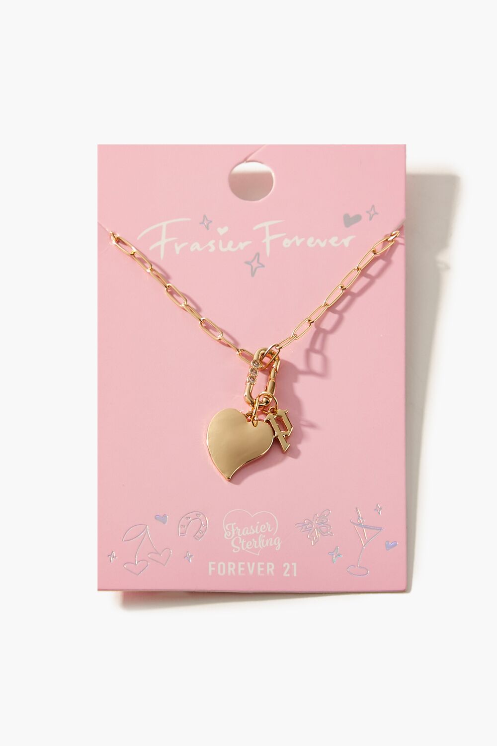 From our Frasier Sterling x Forever 21 collection. this high-polish choker necklace features an anchor chain. heart and initial charms. rhinestone embellishments. and a lobster clasp closure.