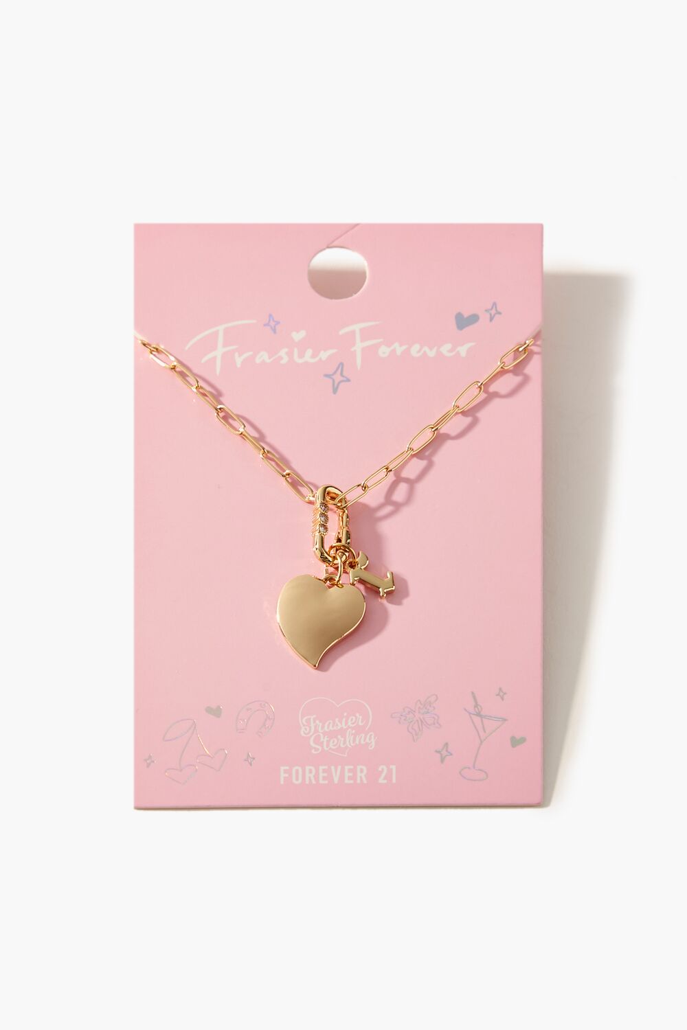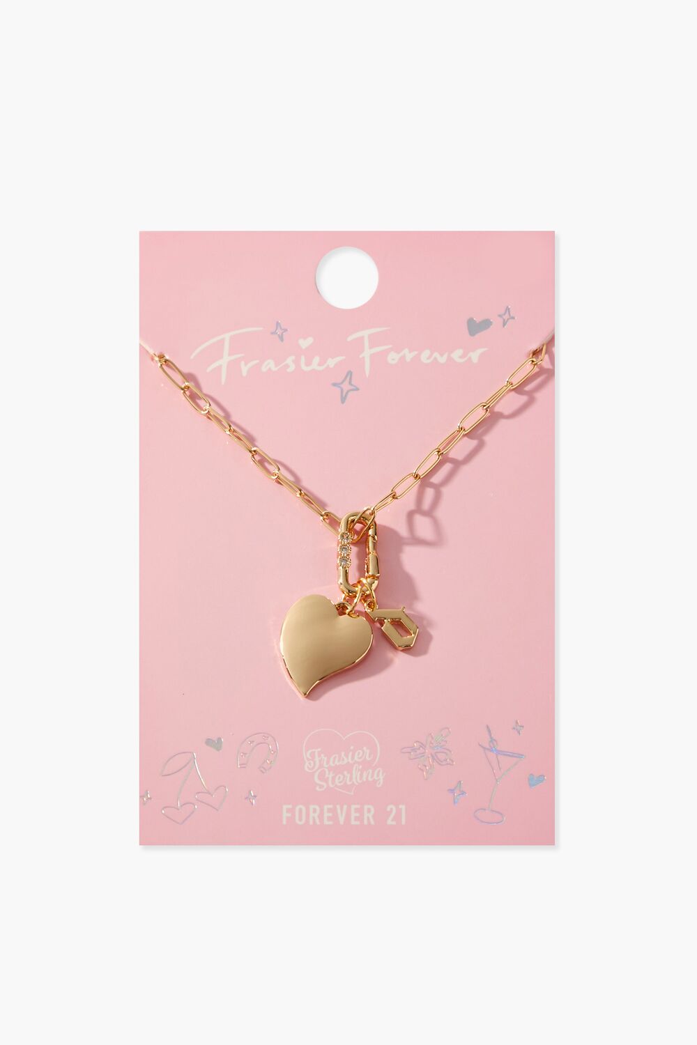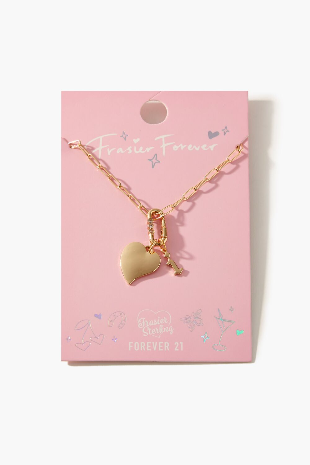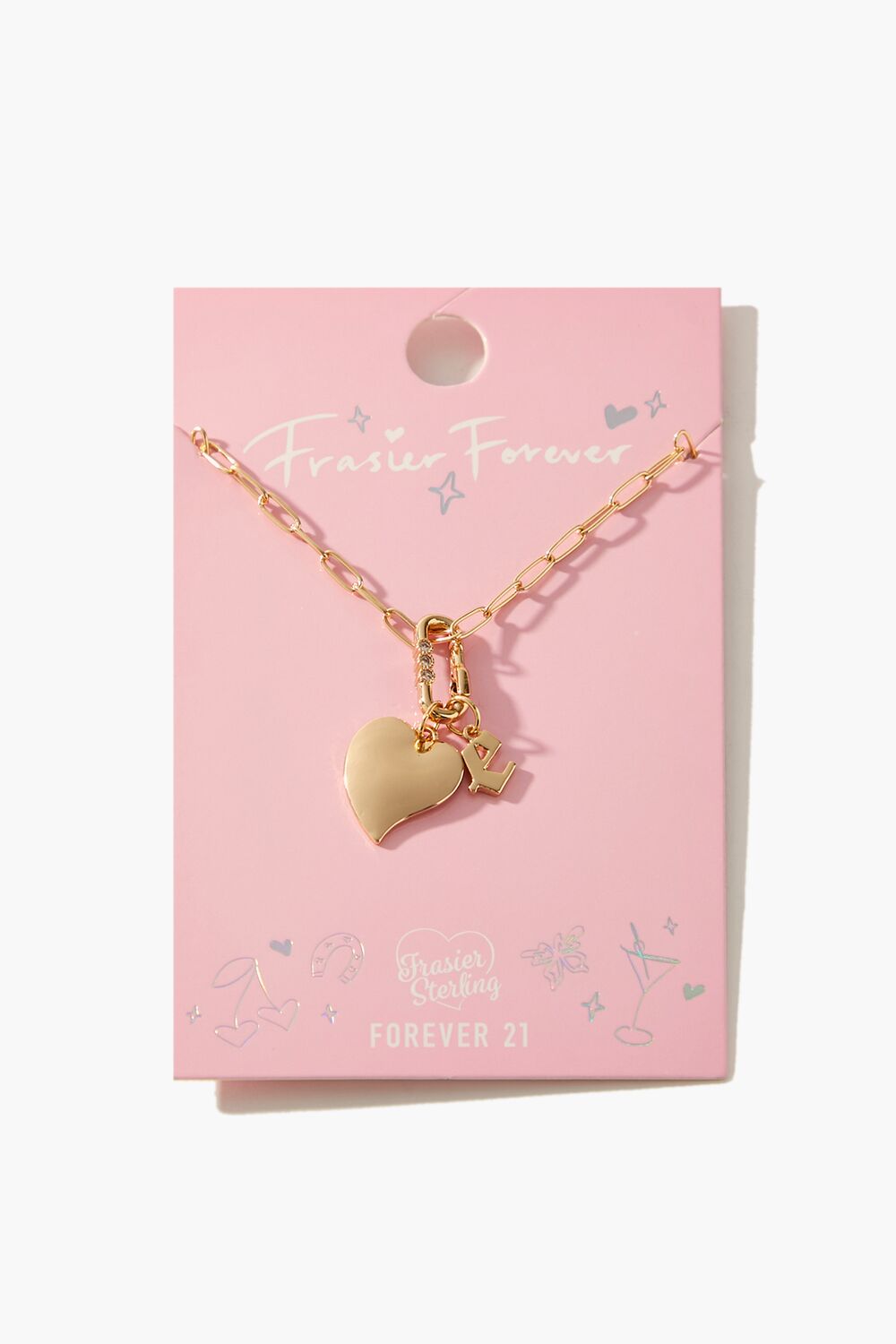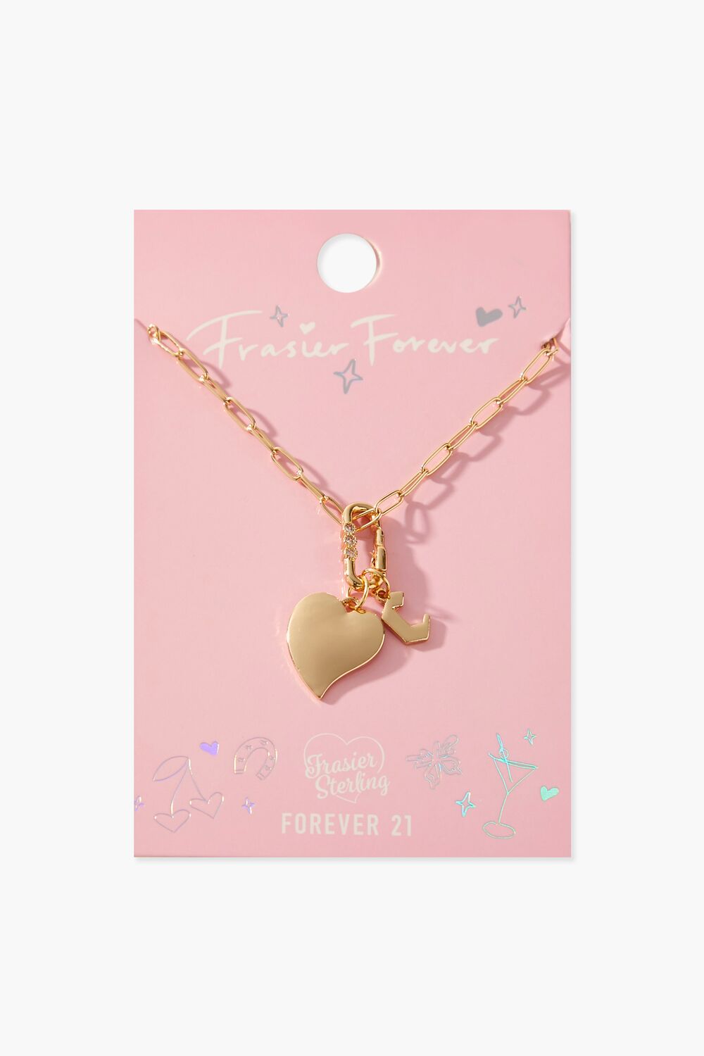 From our Frasier Sterling x Forever 21 collection. this high-polish choker necklace features an anchor chain. heart and initial charms. rhinestone embellishments. and a lobster clasp closure.