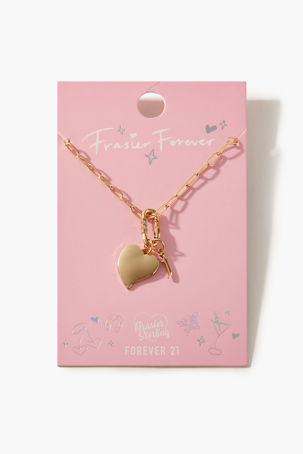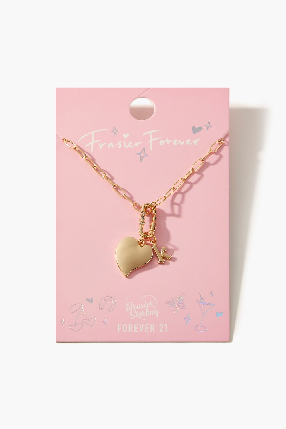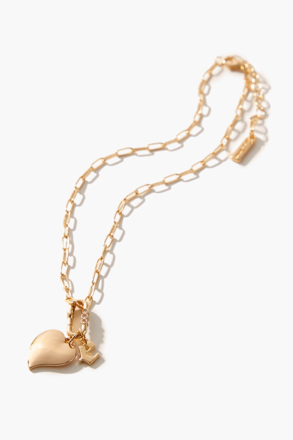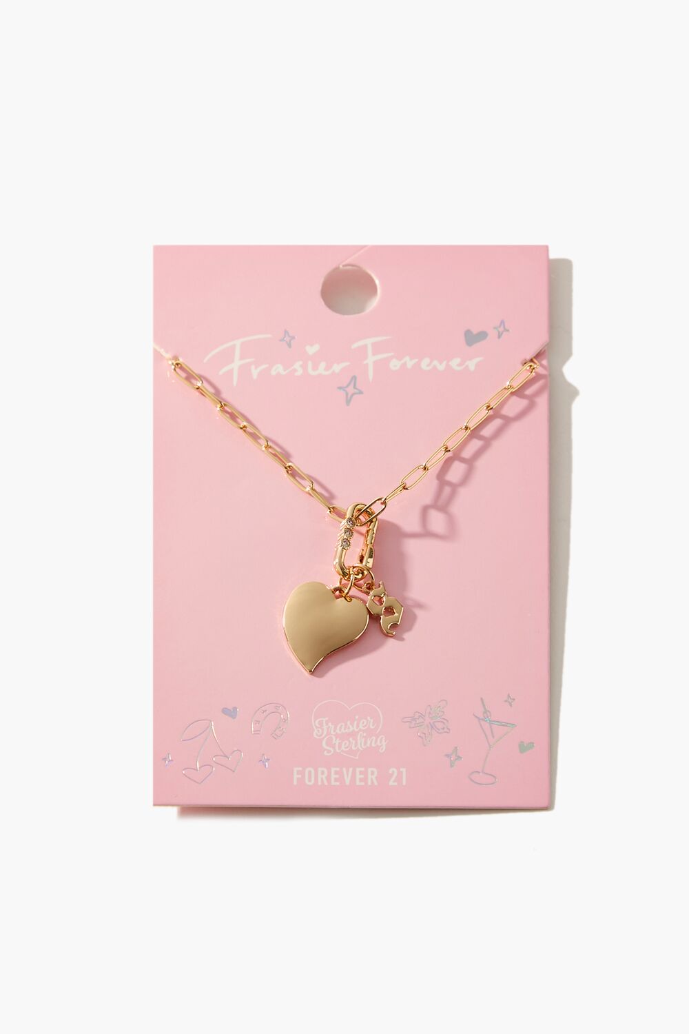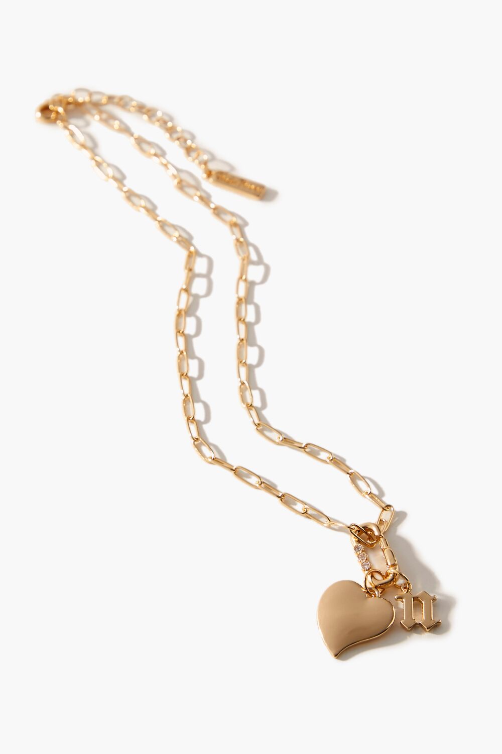 From our Frasier Sterling x Forever 21 collection. this high-polish choker necklace features an anchor chain. heart and initial charms. rhinestone embellishments. and a lobster clasp closure.