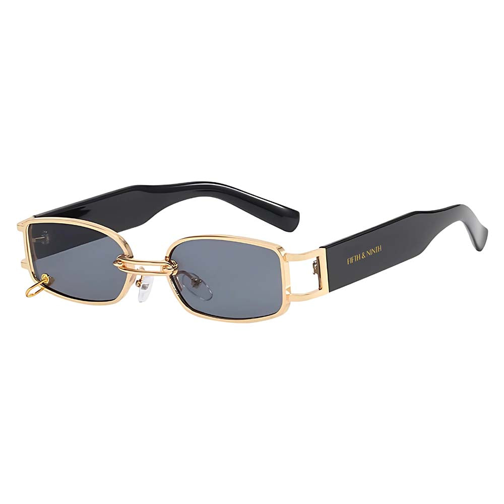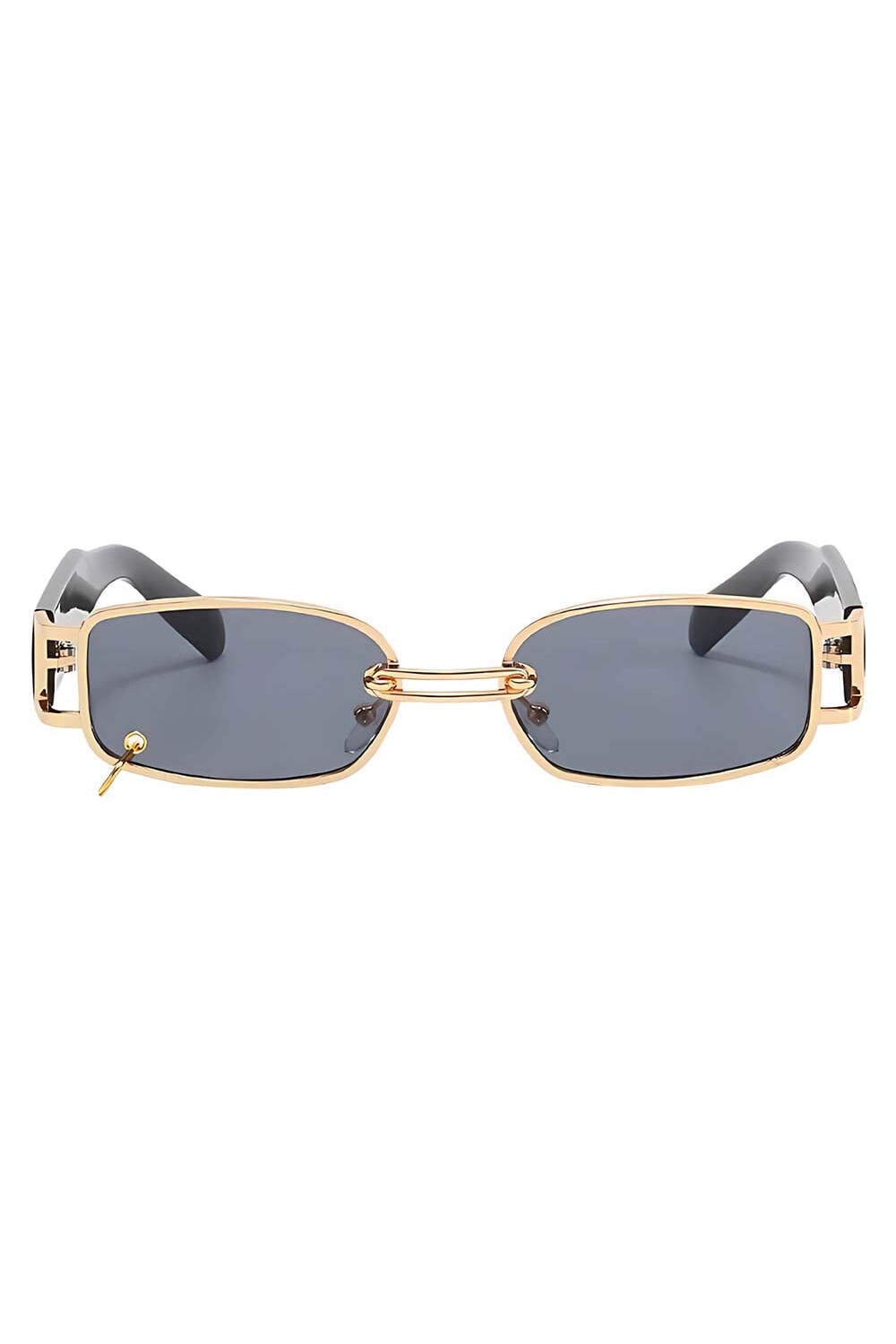 Inez sunglasses bring a daring edge to a sleek rectangular silhouette. Designed with a single pierced accent on the lens and open metal details at the bridge and temples.