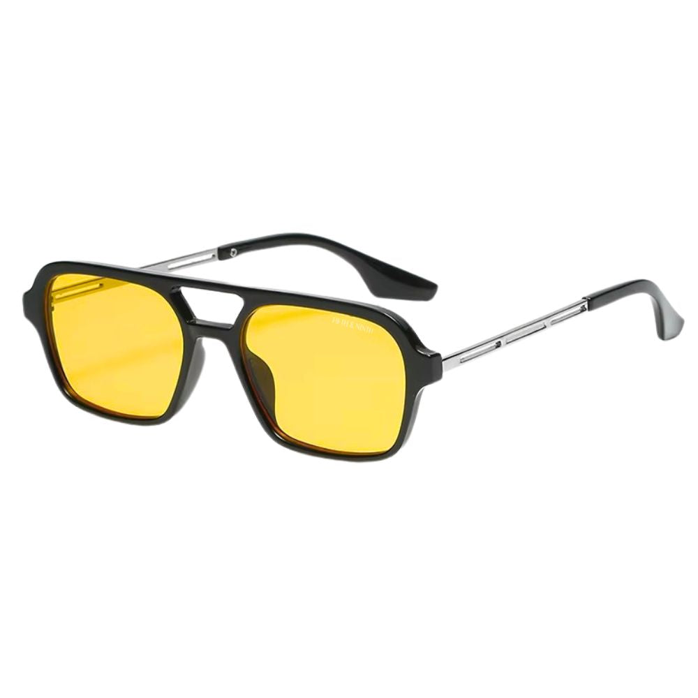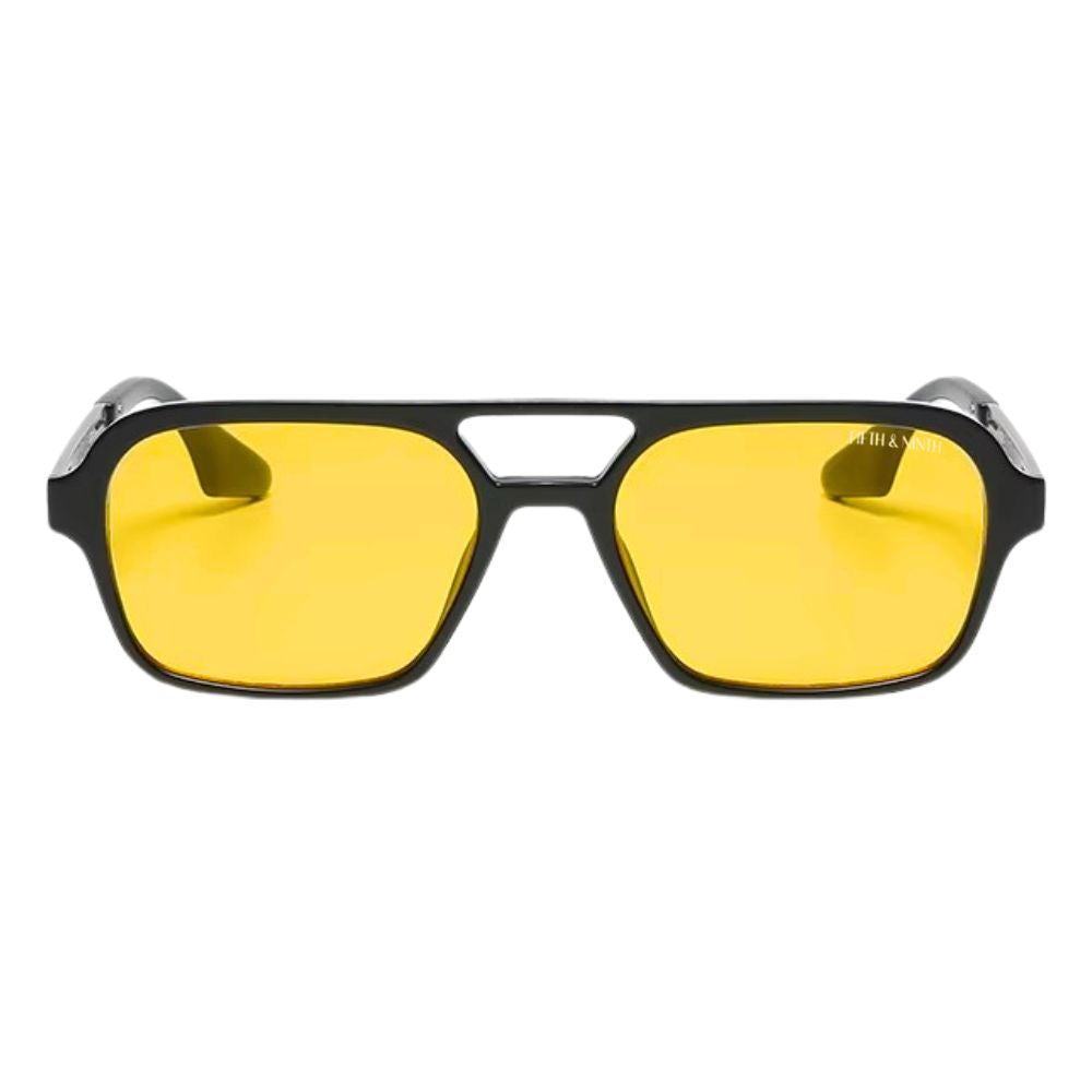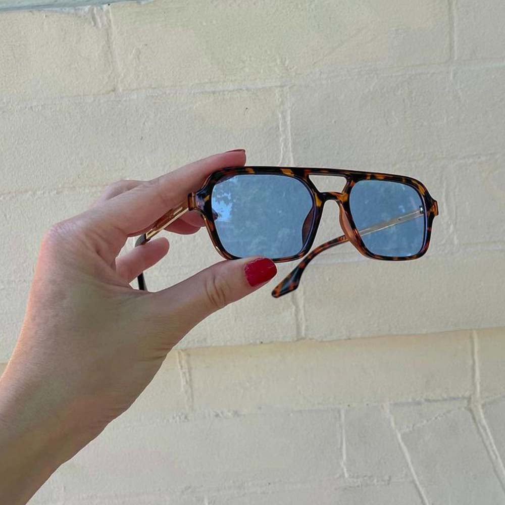 Featuring a gorgeous. tortoise shell. double-bridge aviator frame with stunning light blue lenses or a glossy black frame with piercing yellow lenses. these retro shades have all the style you could ask for.