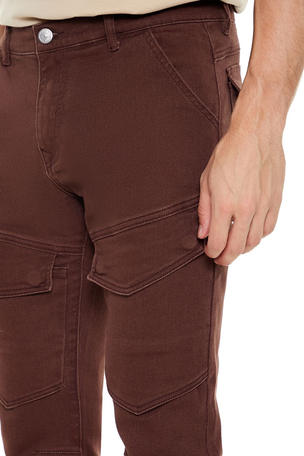 Crafted from stretch-denim. this pair of skinny jeans features a mid-rise waist. belt loops. zip fly and button-front closure. slanted front pockets. leg cargo flap pockets with magnetic closures. and back patch pockets.