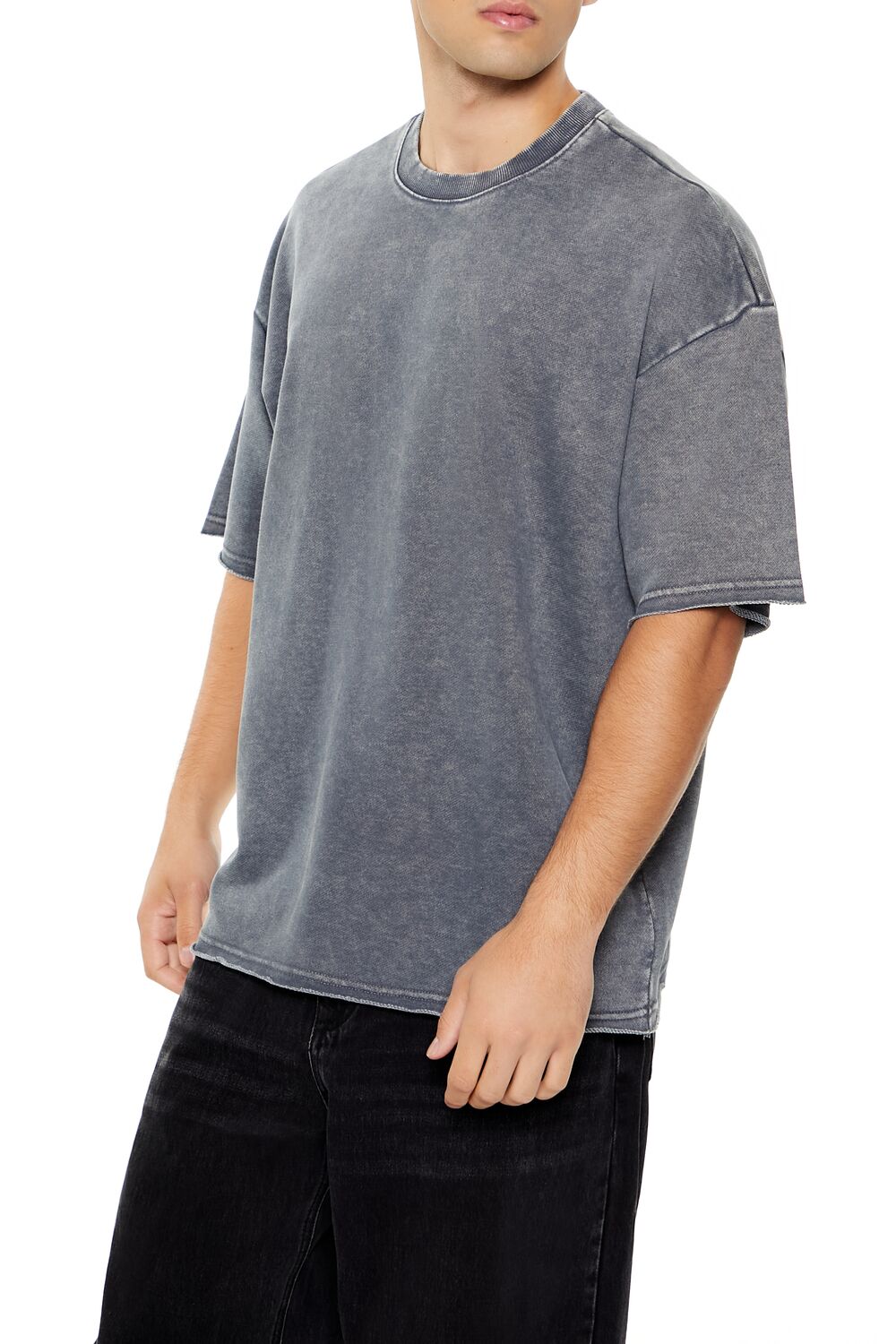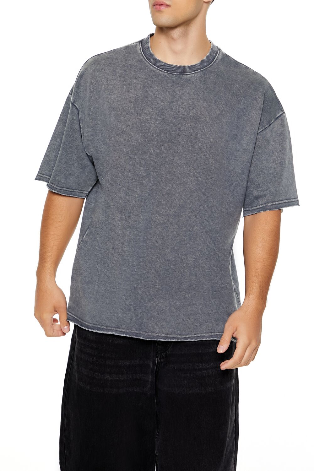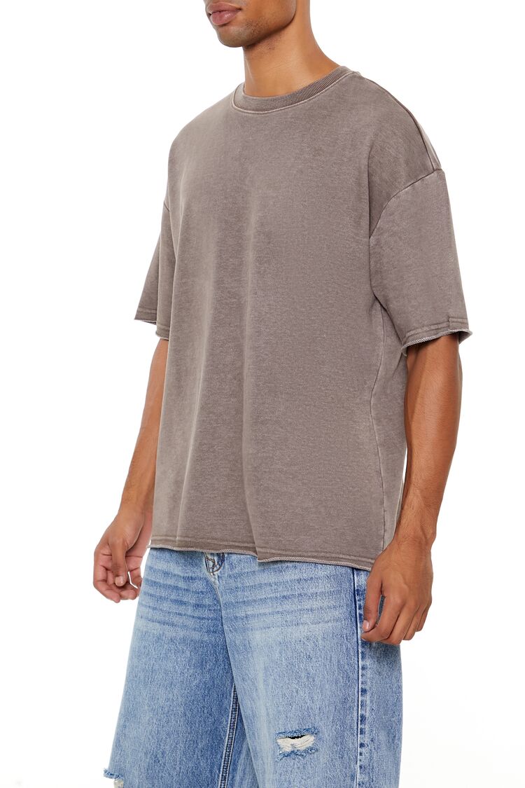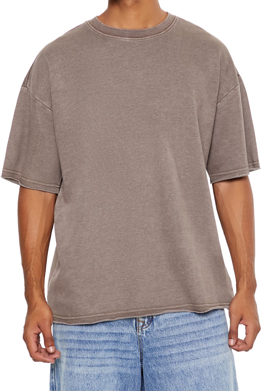 A knit tee featuring a mineral wash. crew neck. and dropped short sleeves.