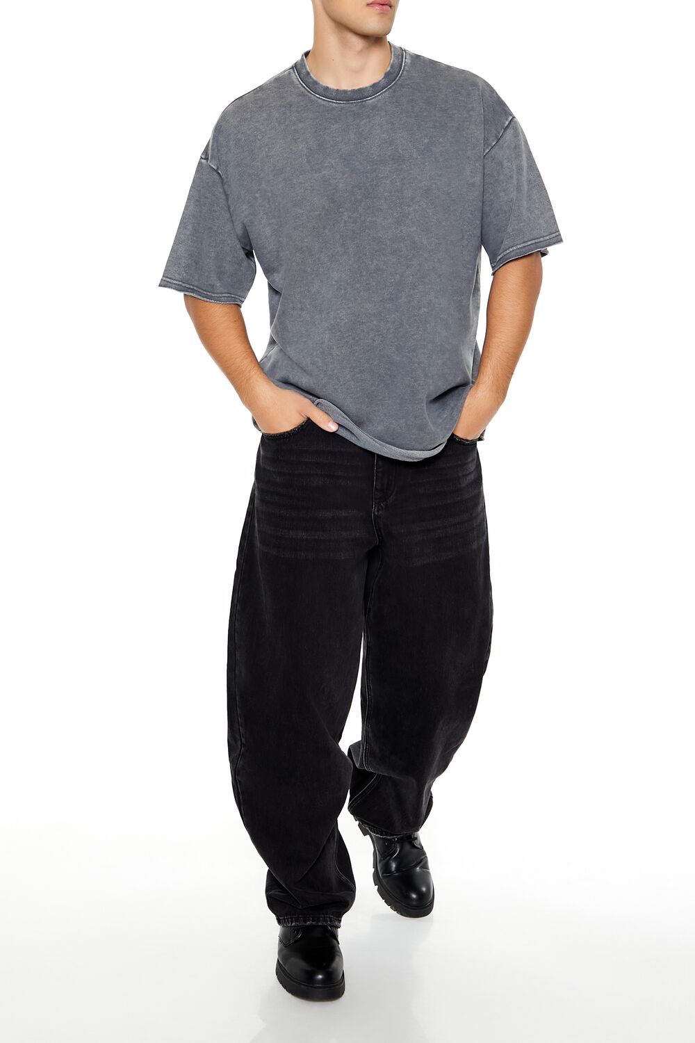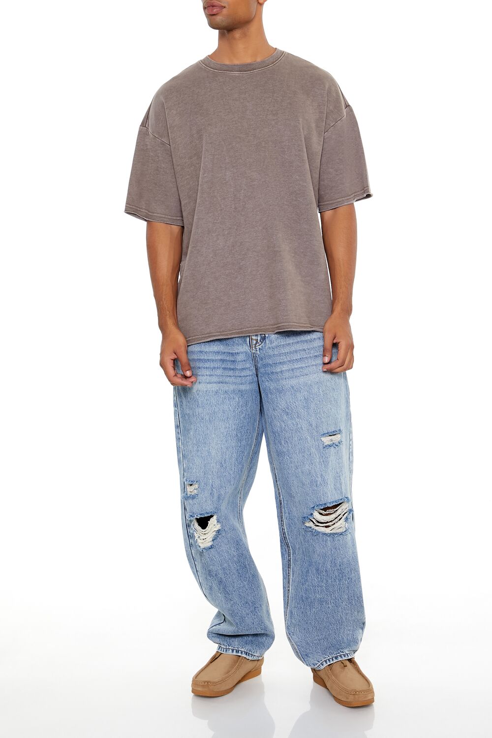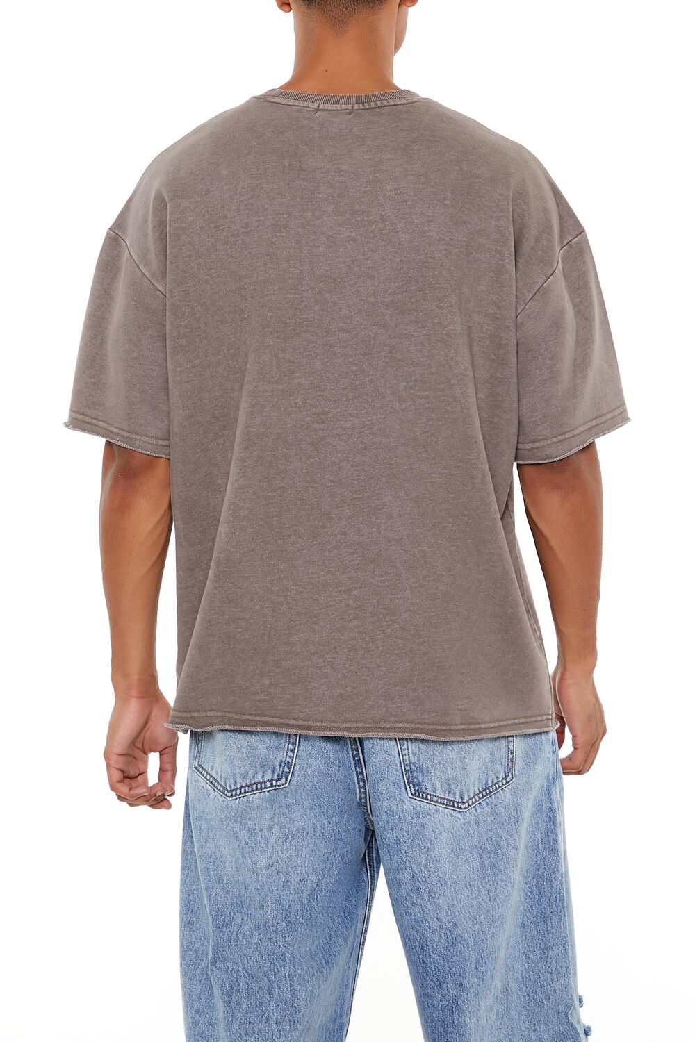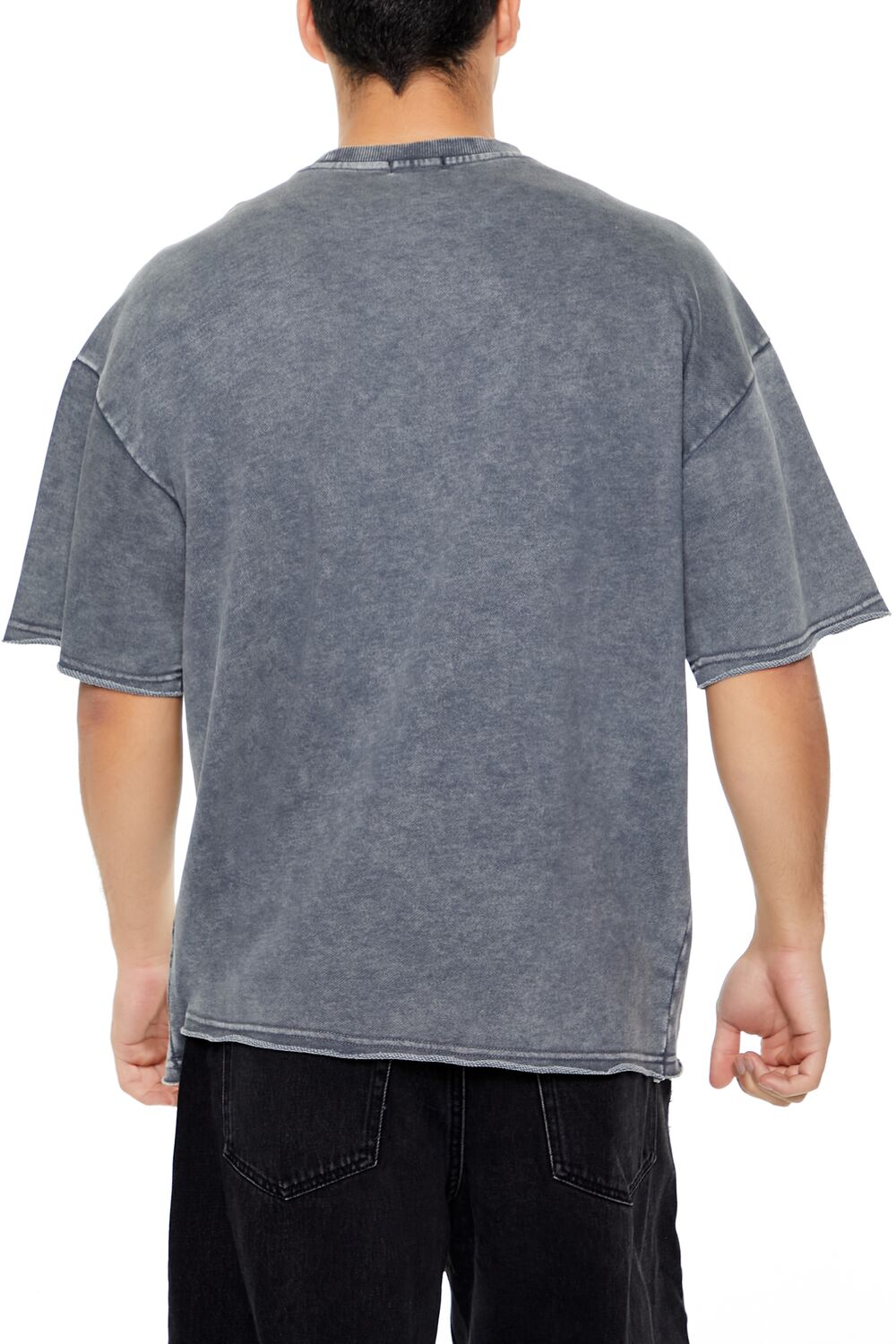 A knit tee featuring a mineral wash. crew neck. and dropped short sleeves.