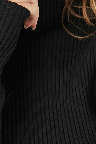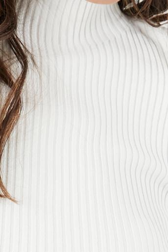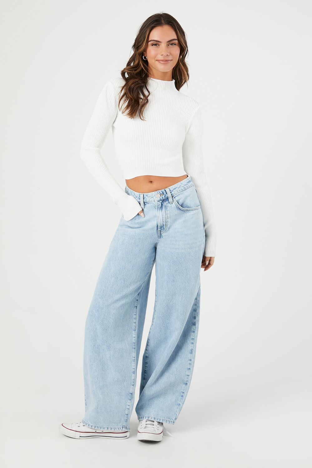 A ribbed sweater-knit top featuring a mock neck. long sleeves. and a cropped hem.