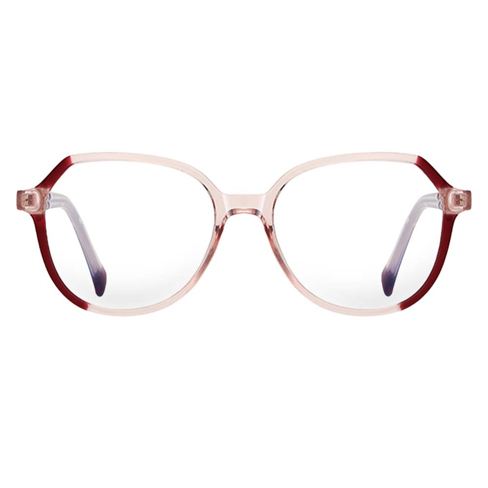 Nelli Blue Light Glasses feature a round?frame with?bold?pops of color on the?frame and temple tips. Available in torte with teal green accents. transparent gray with?charcoal accents. and transparent pink with cranberry accents. Nelli adds a touch of sophistication to your everyday wear.