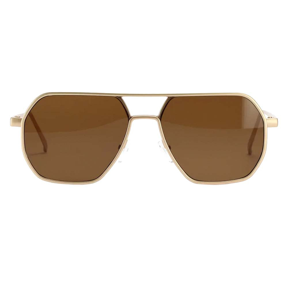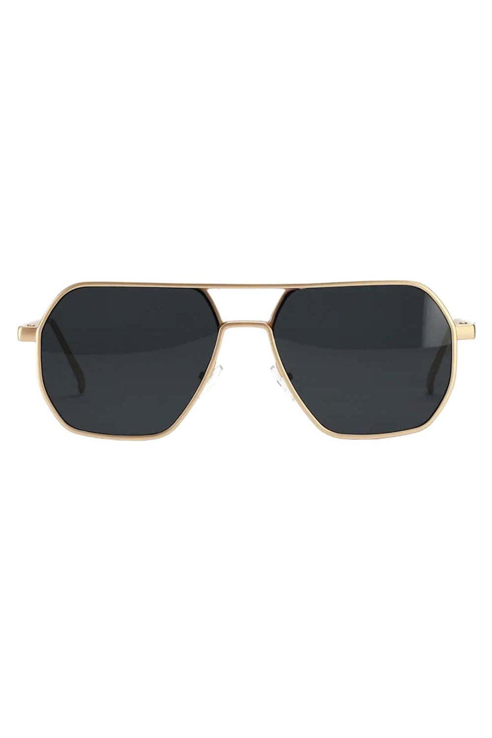 Nola Polarized Sunglasses feature a unisex double-bridge aviator metal frame for timeless appeal and adjustable nose pads ensuring all-day comfort. Available in black/gold. brown/gold. green/gold. and black/black.