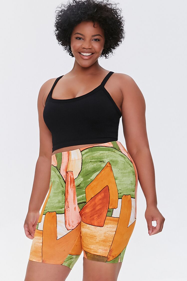 Plus Size Geo Print Biker Shorts