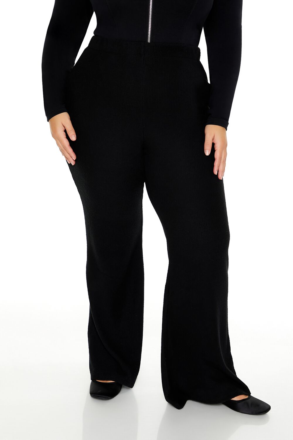 Forever 21+ – A pair of ribbed knit pants featuring a flare leg and high-rise stretchy waistband.