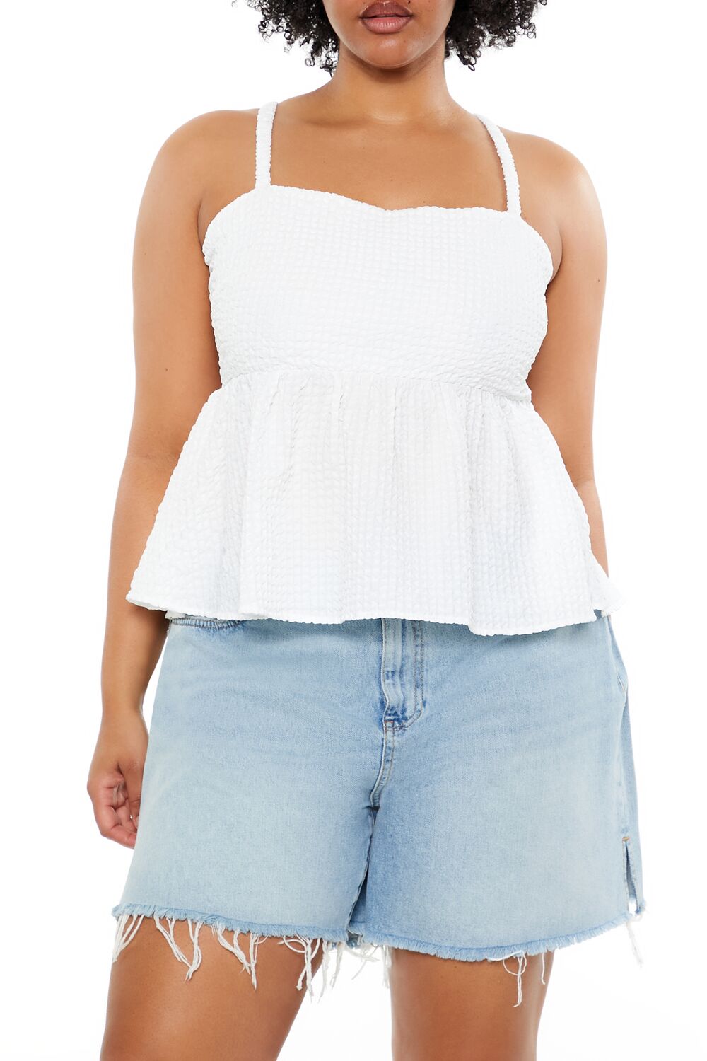 Forever 21+ – A seersucker top featuring a sweetheart neckline. caged back. and a flounce hem.