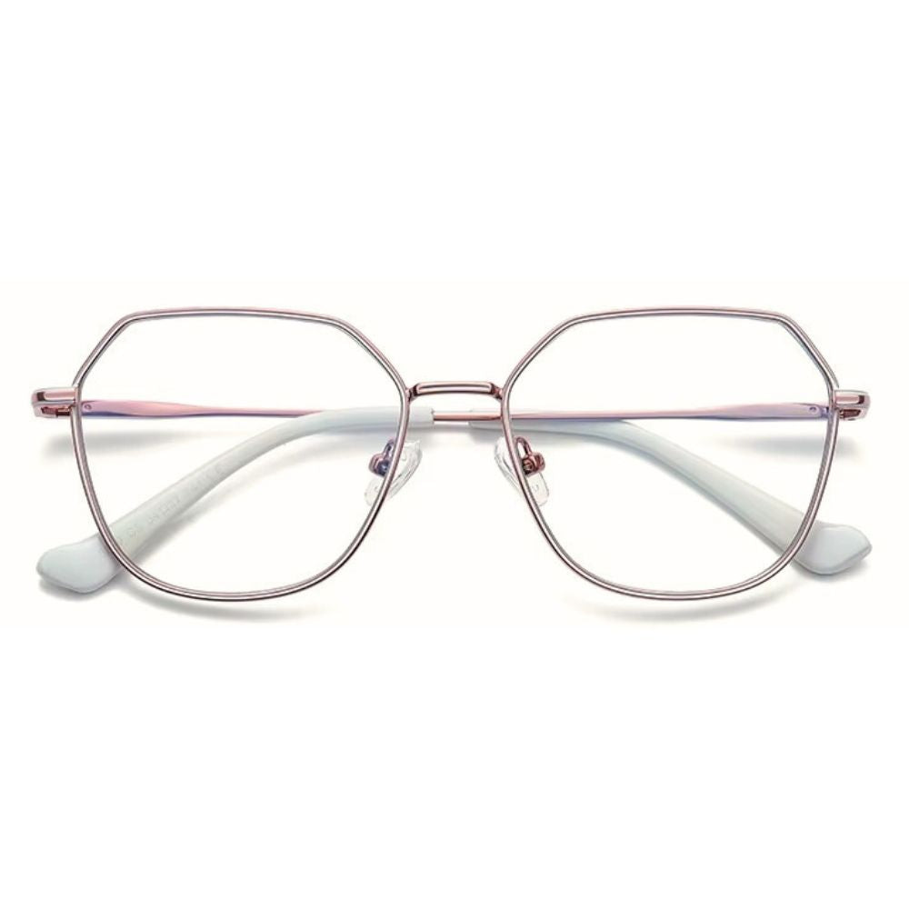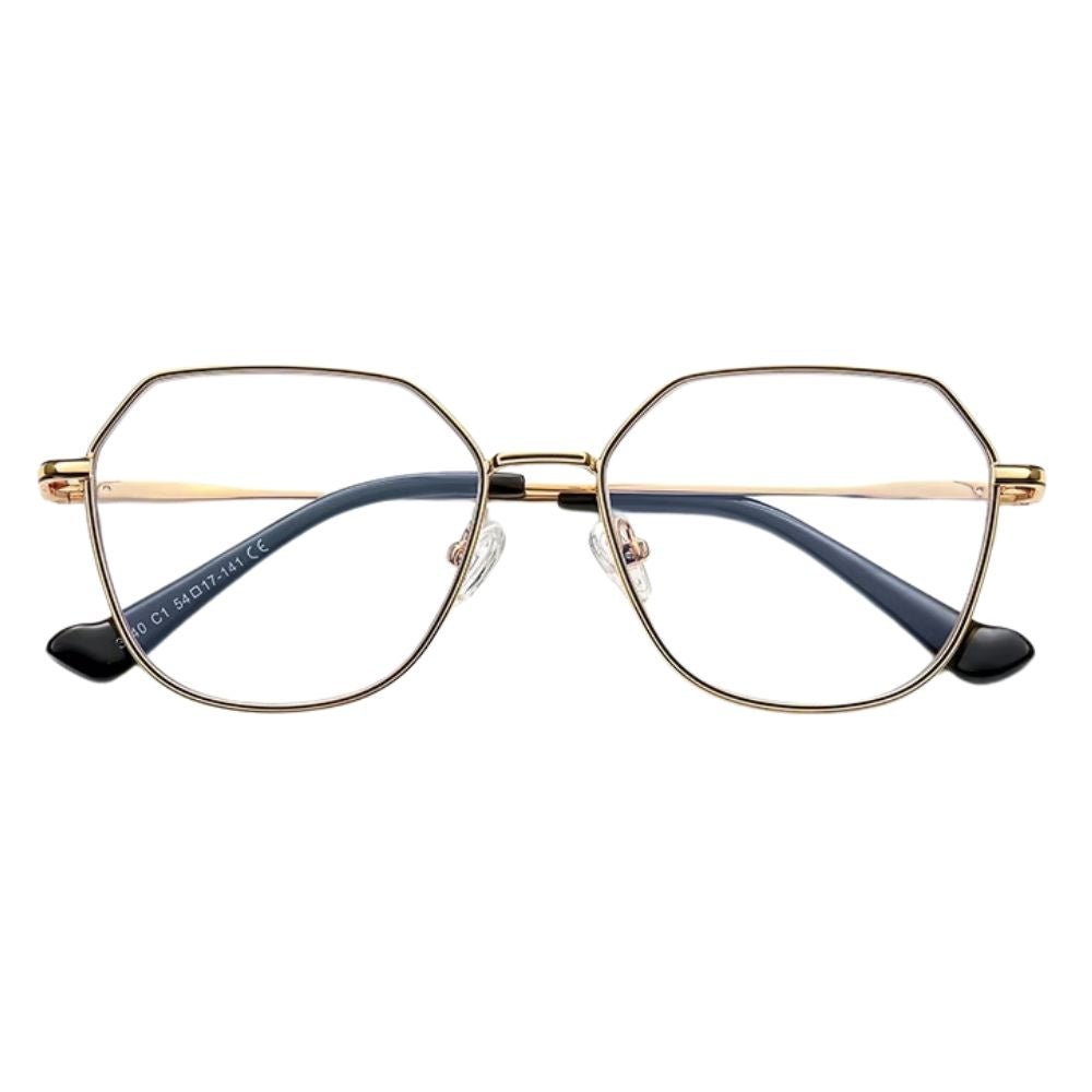 Selena Blue Light Blocking Glasses are the perfect combination of glamorous and practical. Our stylish. lightweight metal frames feature accent colors to suit all tastes. and our rubberized ear tips and nose pads ensure all-day comfort. With its eye-catching geometric shape. Selena provides the ultimate defense against blue light fatigue with a unique style and flair!