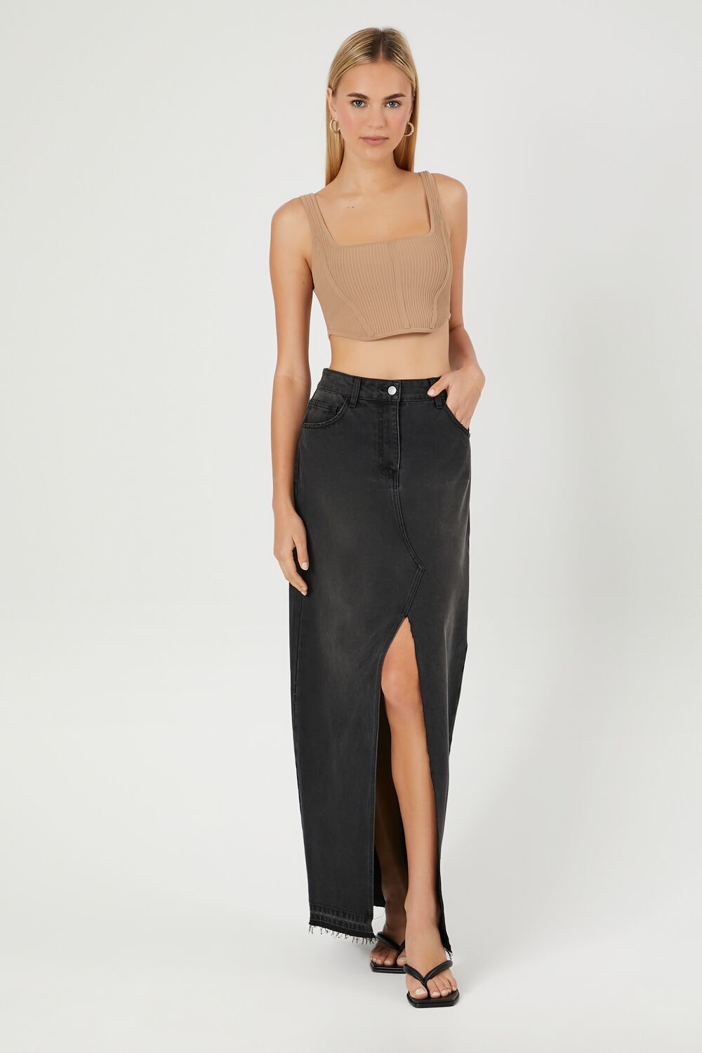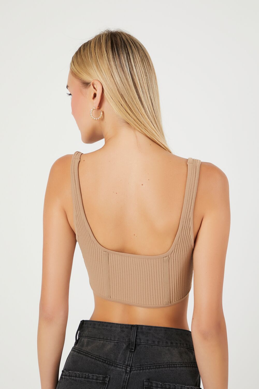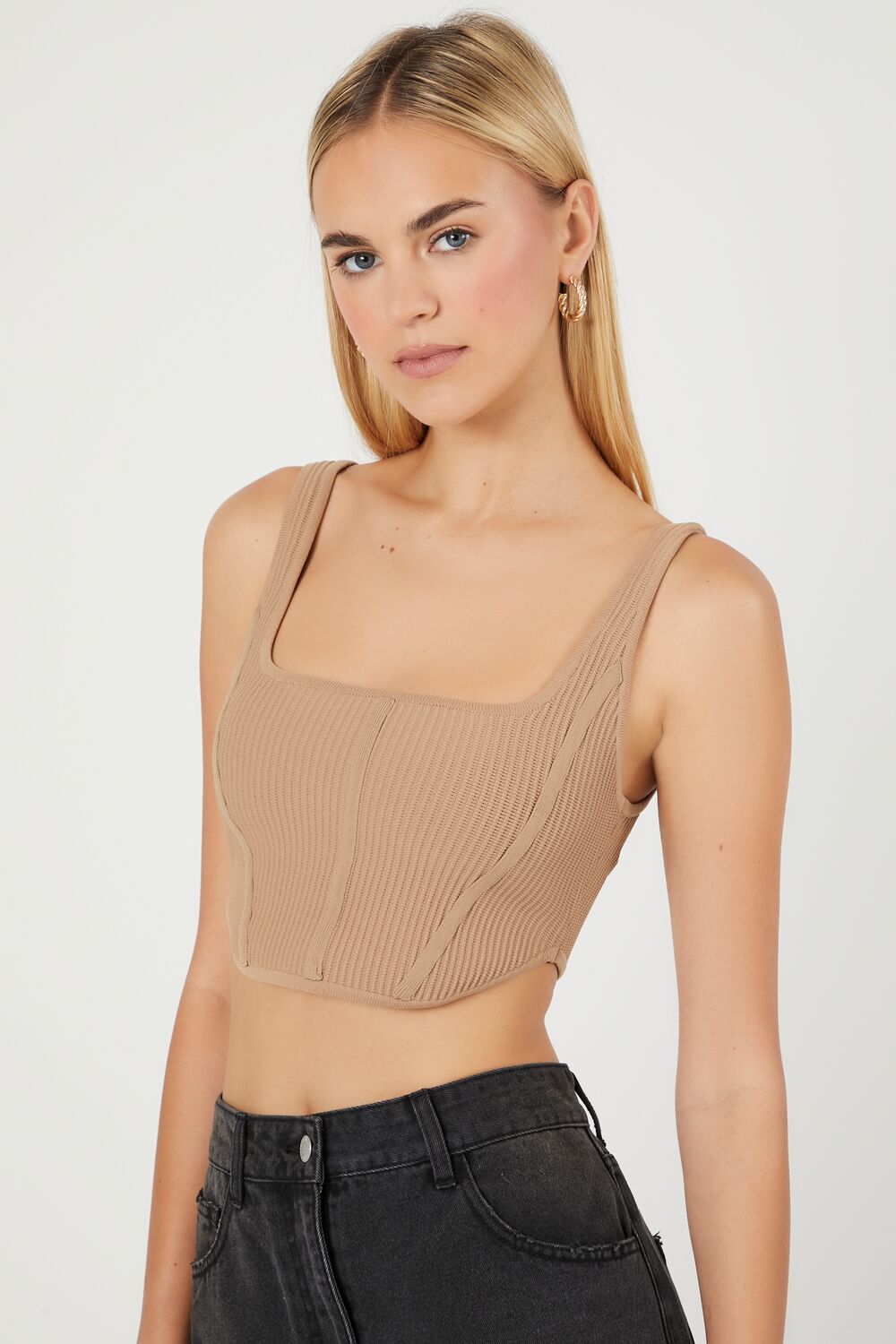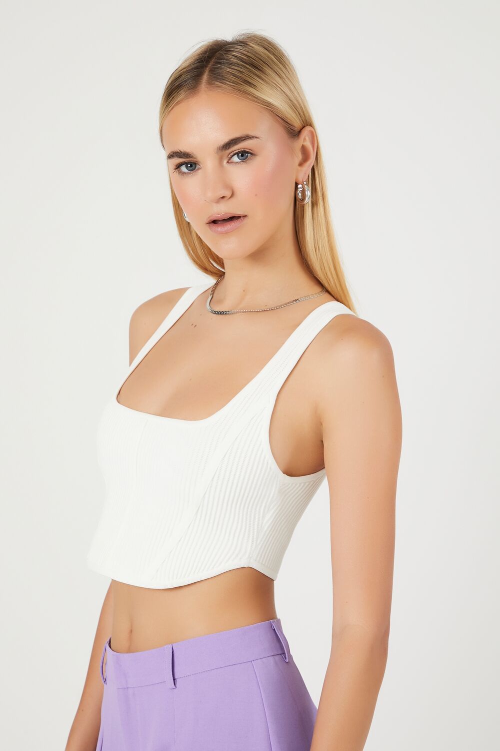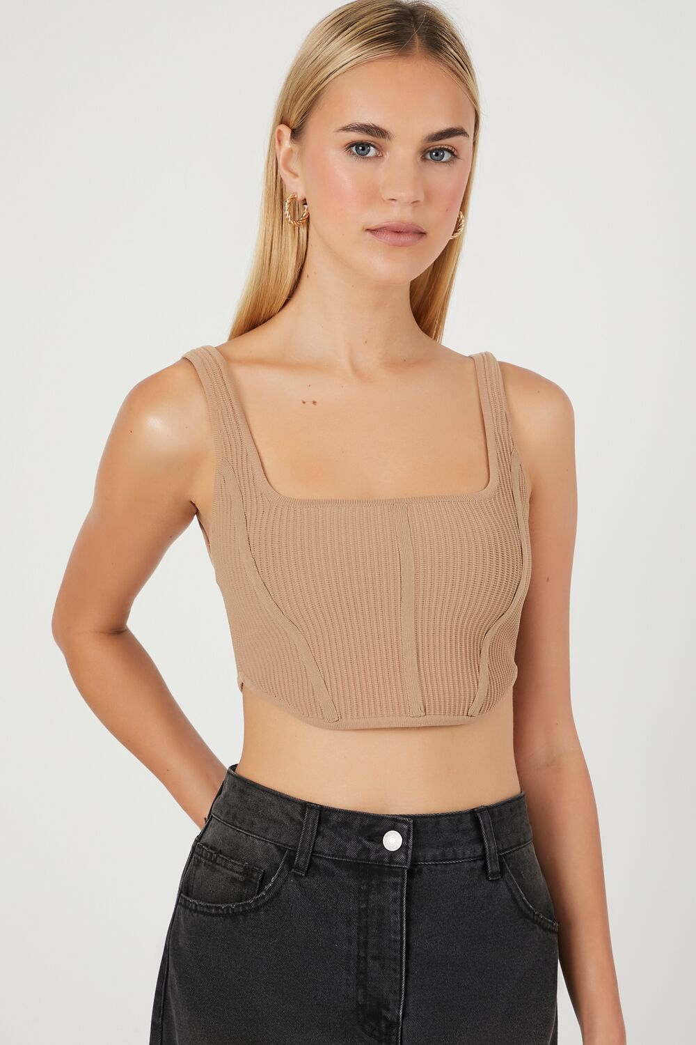 A sweater-knit tank top featuring a square-cut neckline and back. seamed construction. cropped silhouette. and a curved hem.