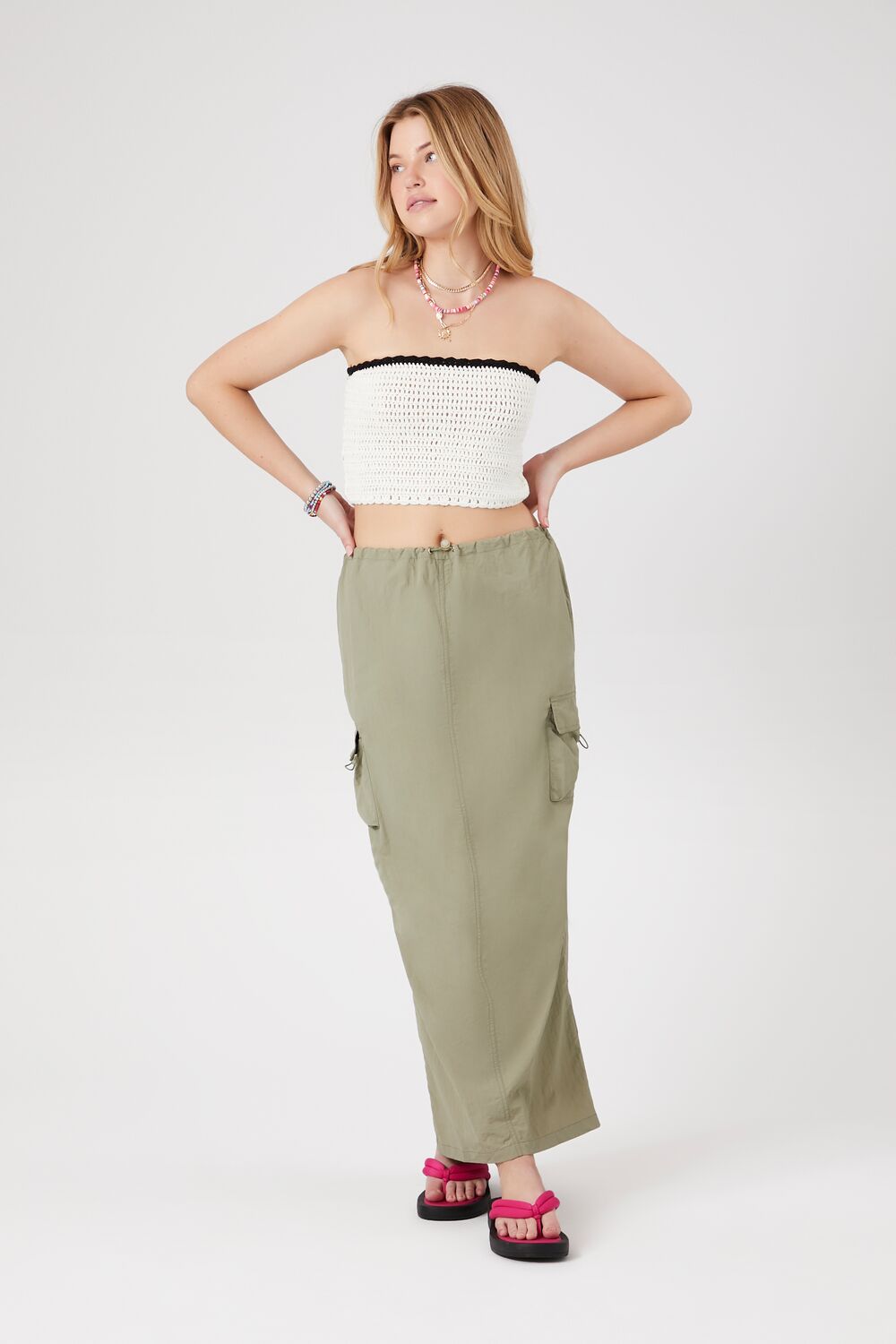 A sweater-knit tube top featuring a straight-cut neckline and back. contrasting trim. cropped hem. and fitted silhouette.
