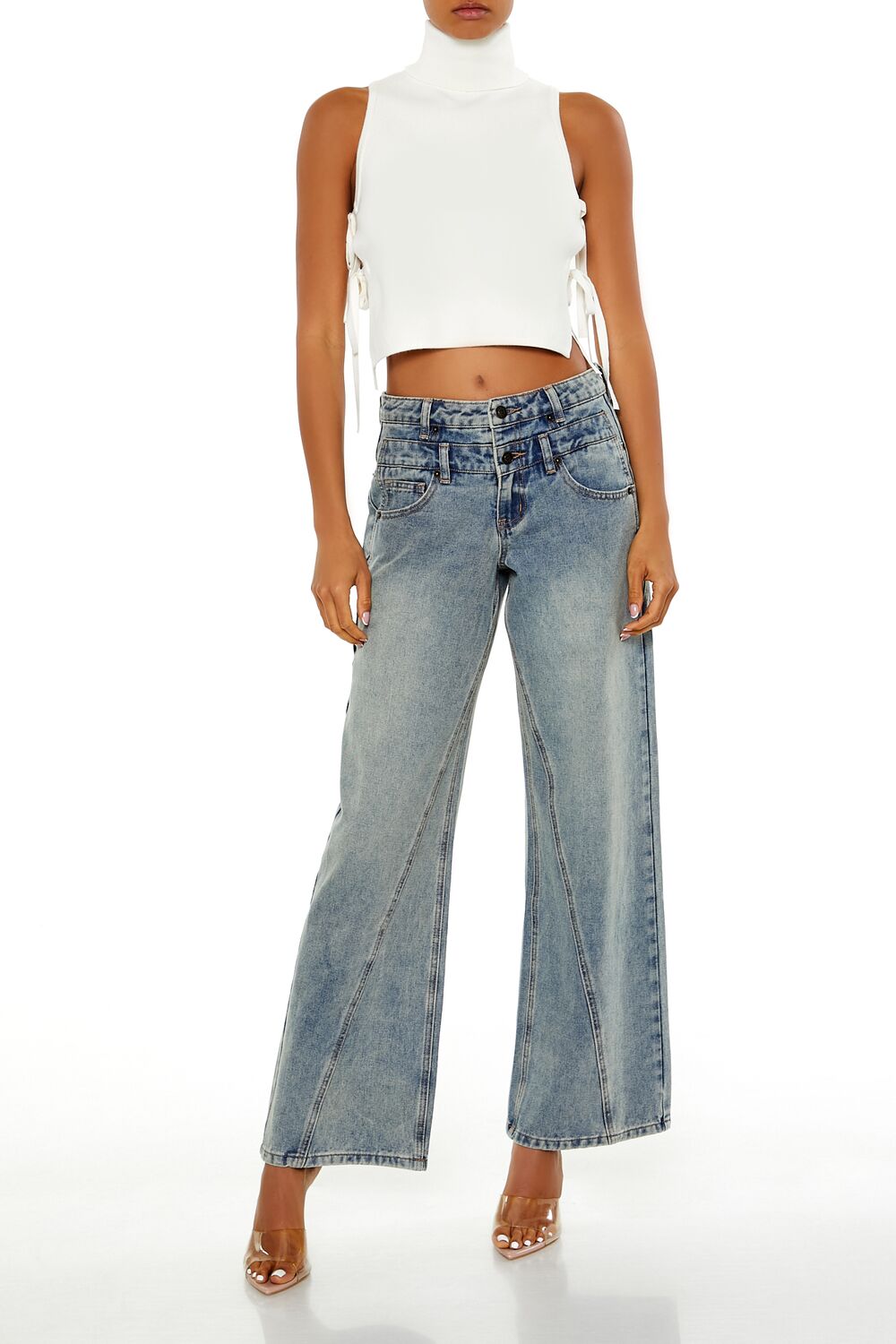 A sweater-knit crop top featuring a turtleneck. sleeveless cut. and open sides with self-tie closures.