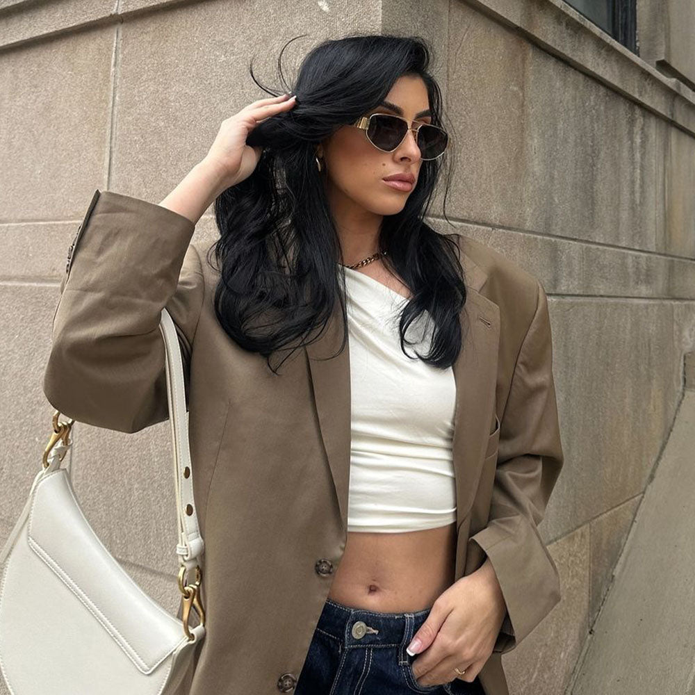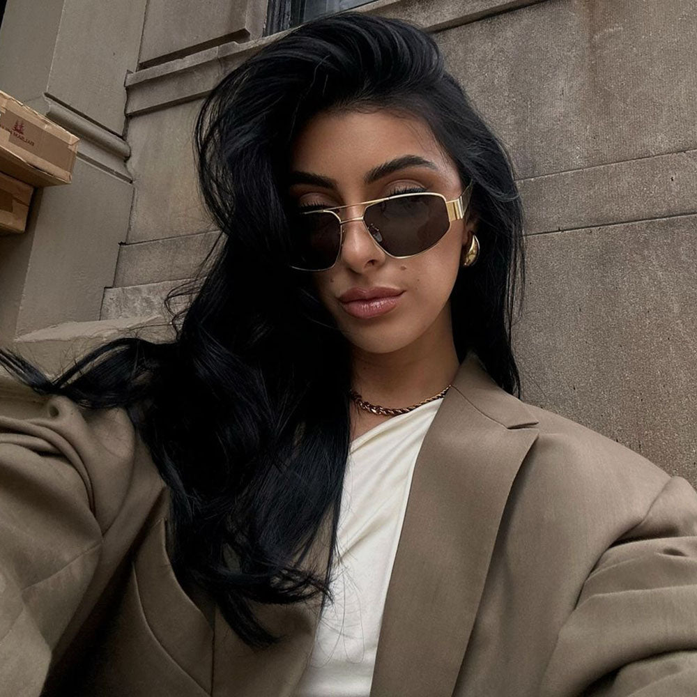 Meet our Taylor polarized sunglasses. your new favorite aviator. With a gold metal frame and classic lens options in black and brown. these timeless shades are the perfect blend of elegance and everyday wear.