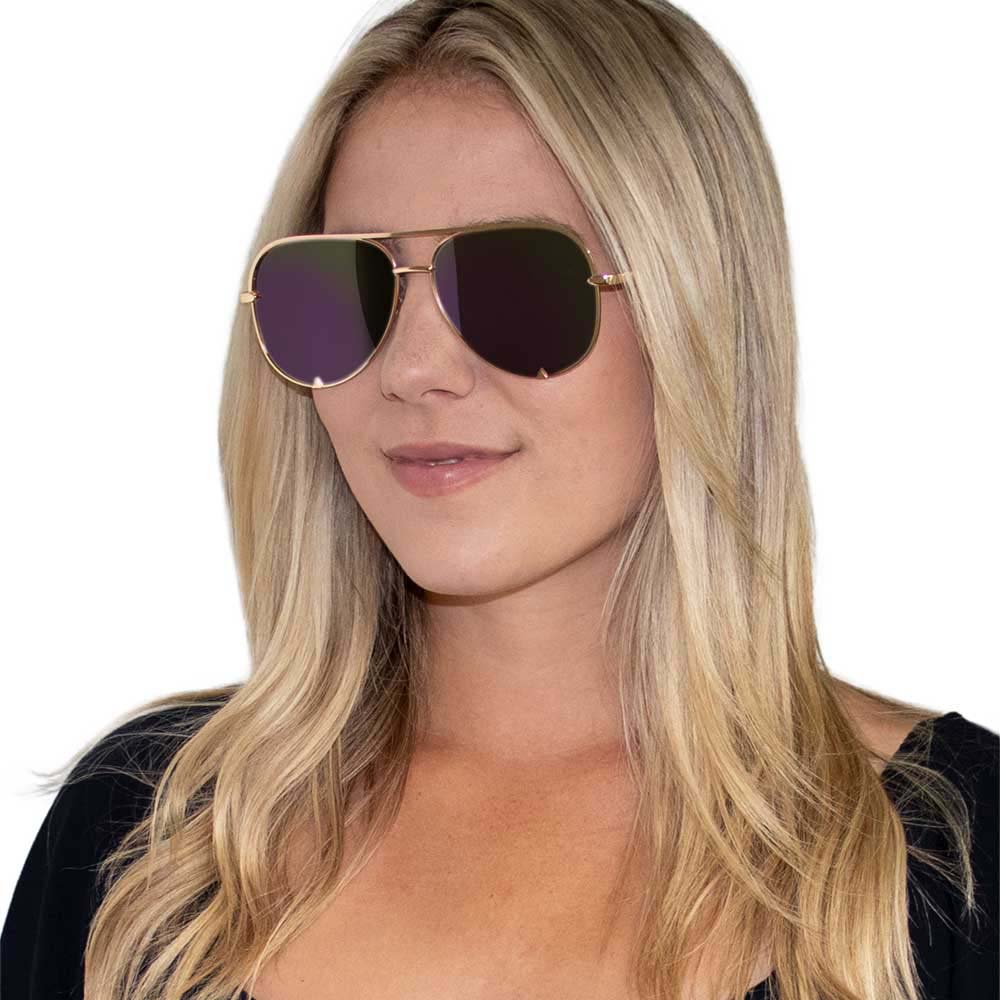 Walker is a lightweight aviator frame that is universally flattering on all face shapes. Available?in gradient (blush; purple)?and?mirrored (opal shifts from green to purple; silver) polarized lenses.?