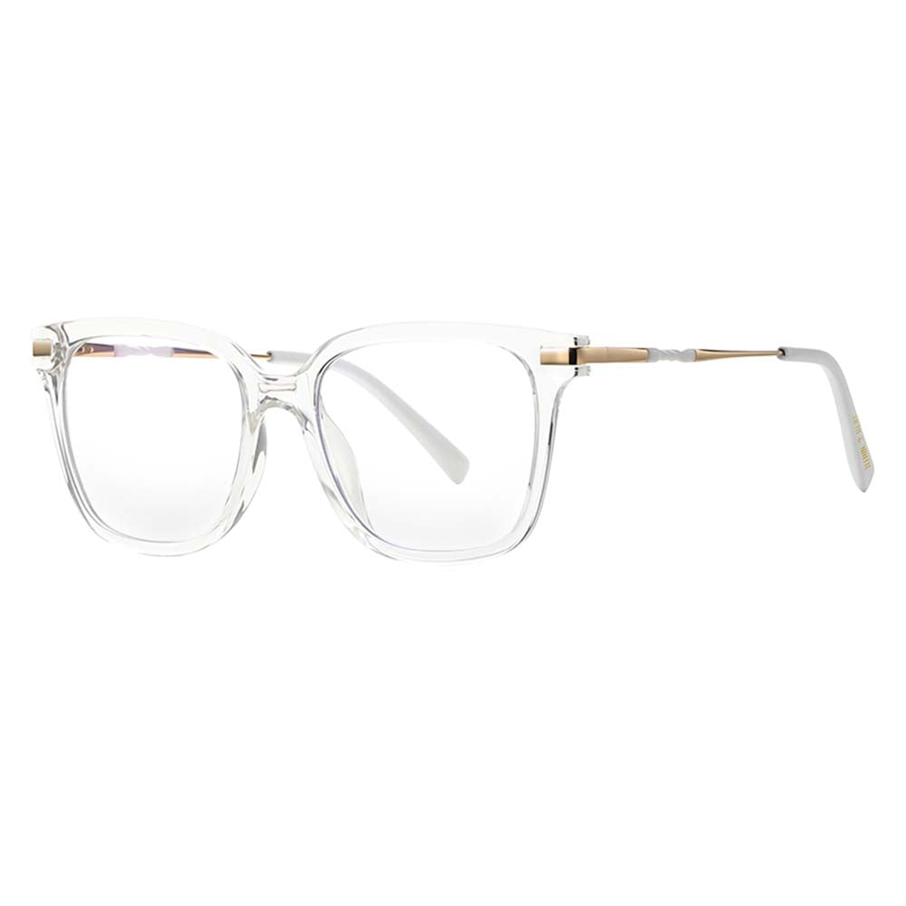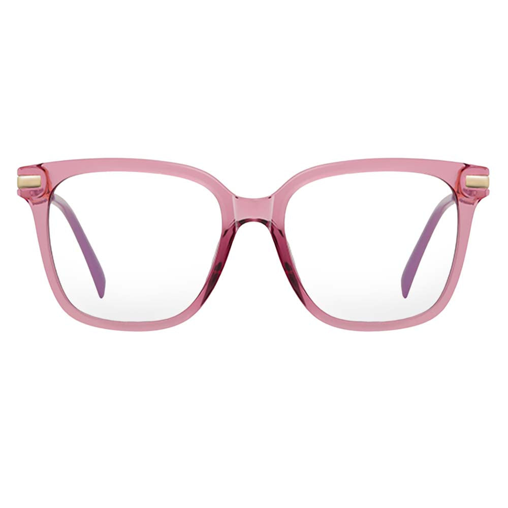 Yara Blue Light Glasses?feature a unisex square frame with a charming twist accent in the frame’s color. These glasses strike the perfect balance between fashion and functionality. The blend of gold metal arms and resilient temple tips harmonizes with the frame’s front. while the flexible hinges?accommodate wider faces. Available in black. torte. transparent bubblegum pink. and clear. Yara offers both style and comfort for everyday wear.