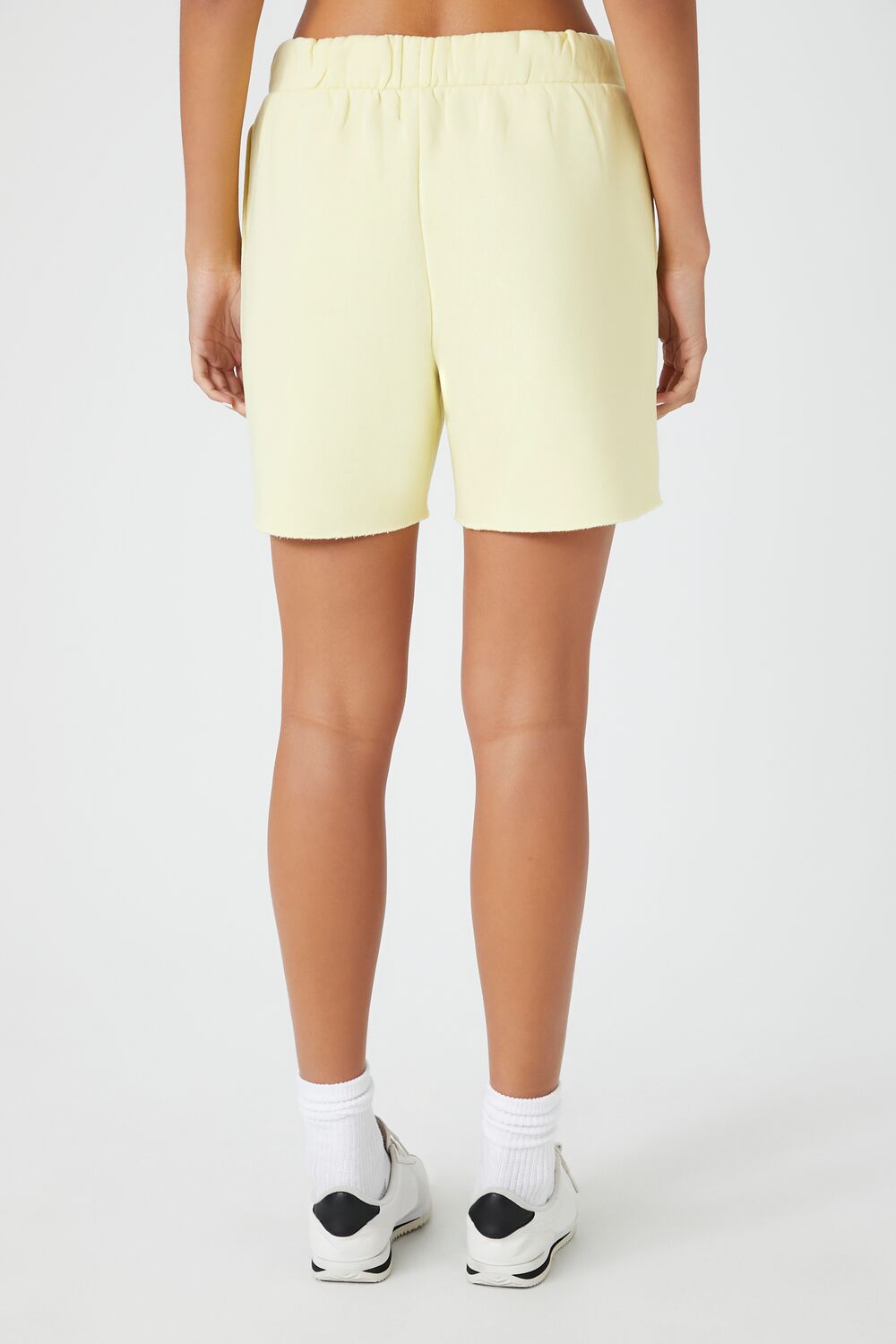 A pair of athletic fleece sweatshorts featuring an allover mineral wash. toggle elasticized waistband. and on-seam pockets.