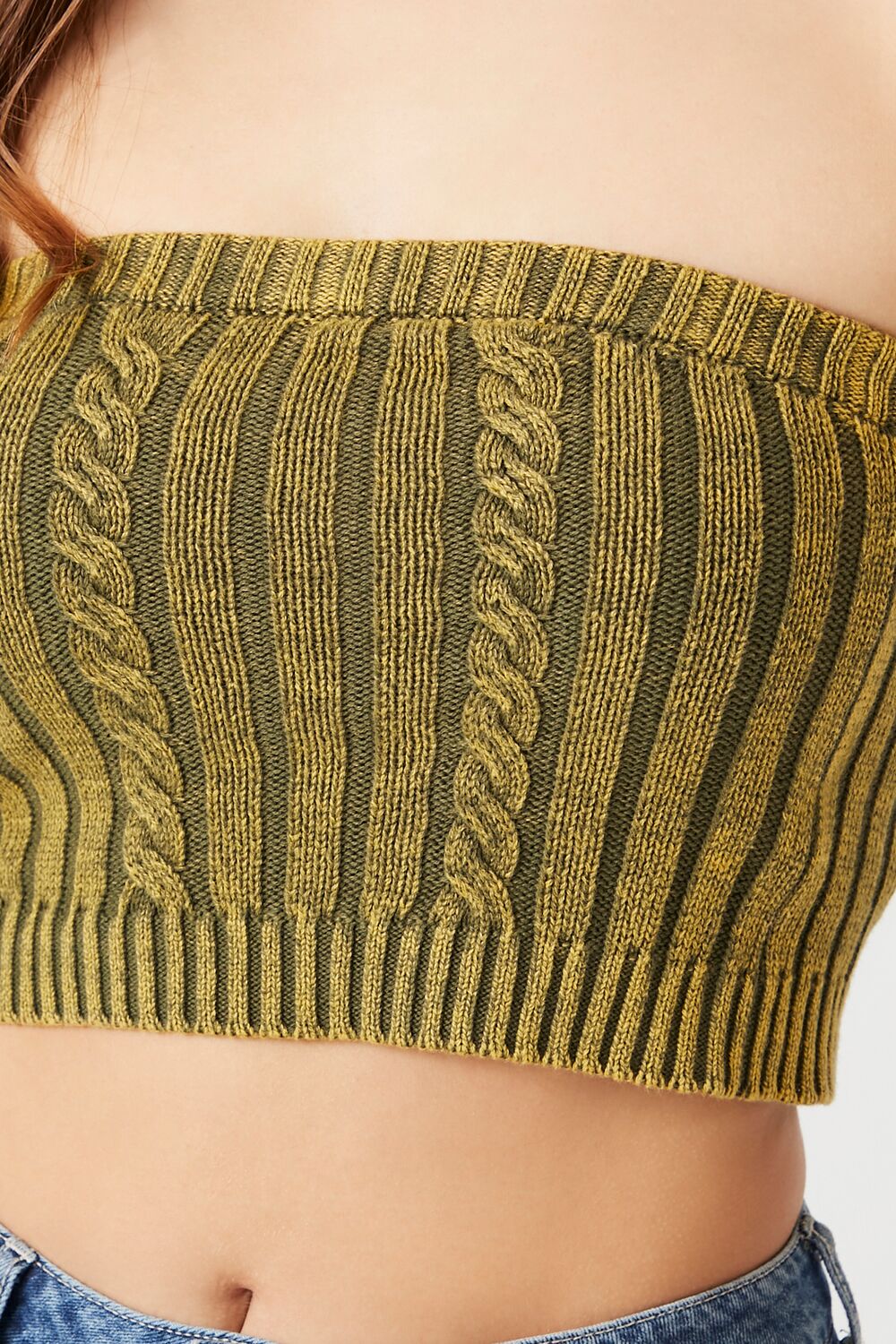 A cable sweater-knit tube top featuring a straight-cut neckline and back. allover mineral wash. and a cropped hem.