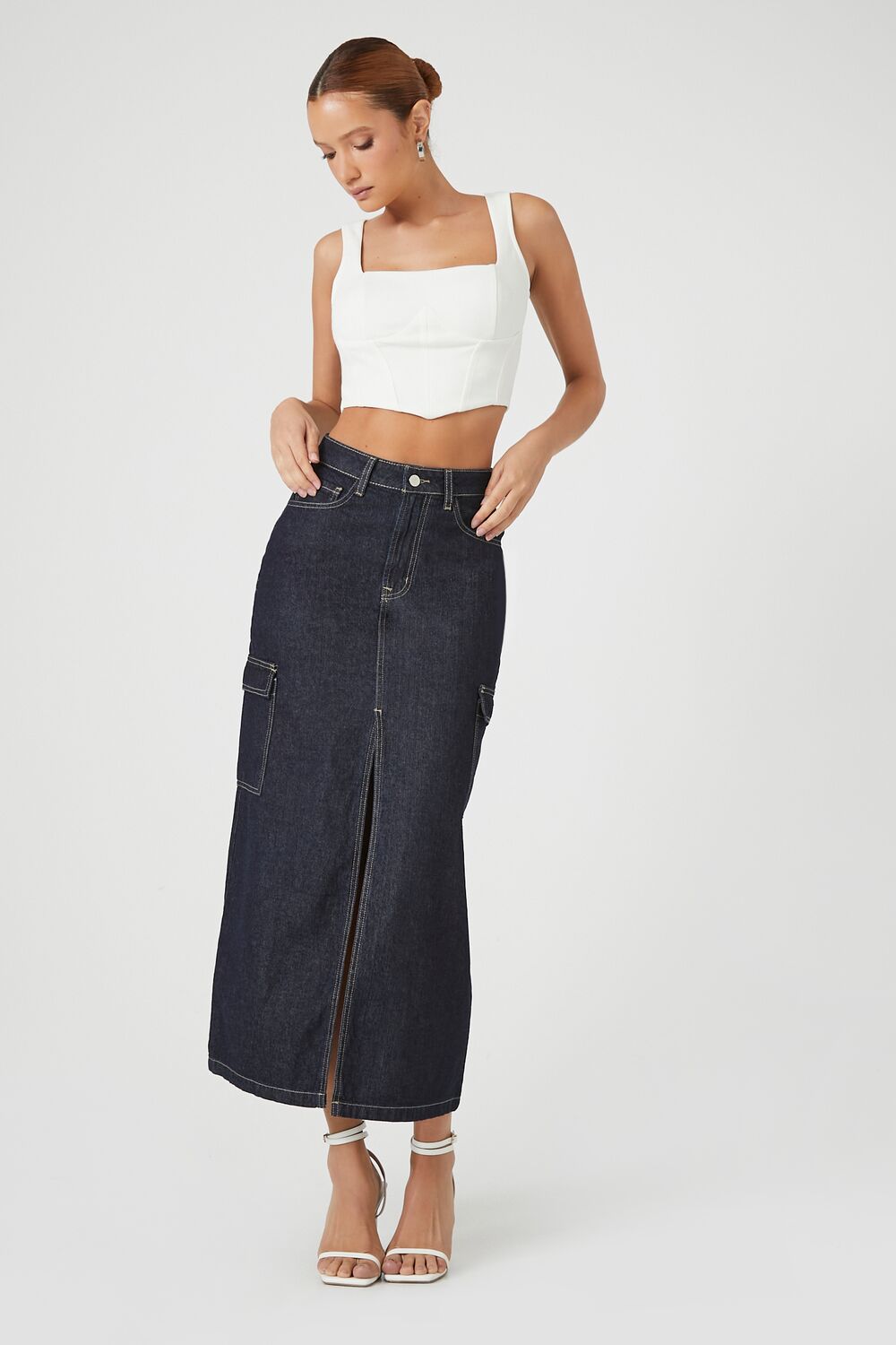A knit crop top featuring a square-cut neckline and back. shoulder straps. and a corset-inspired seamed construction.