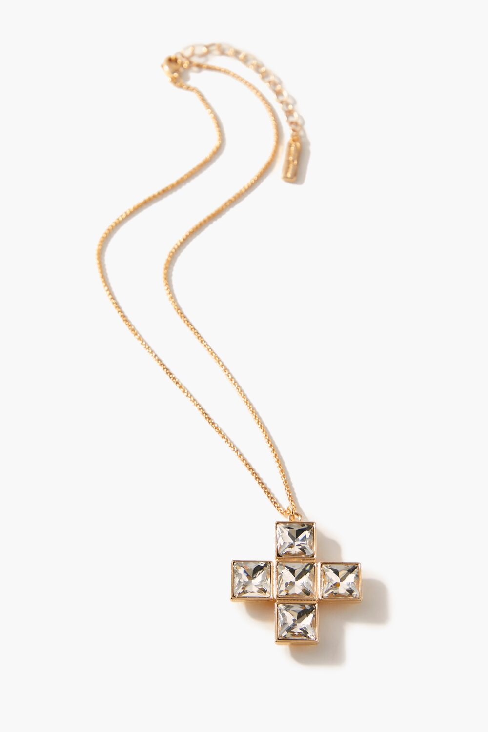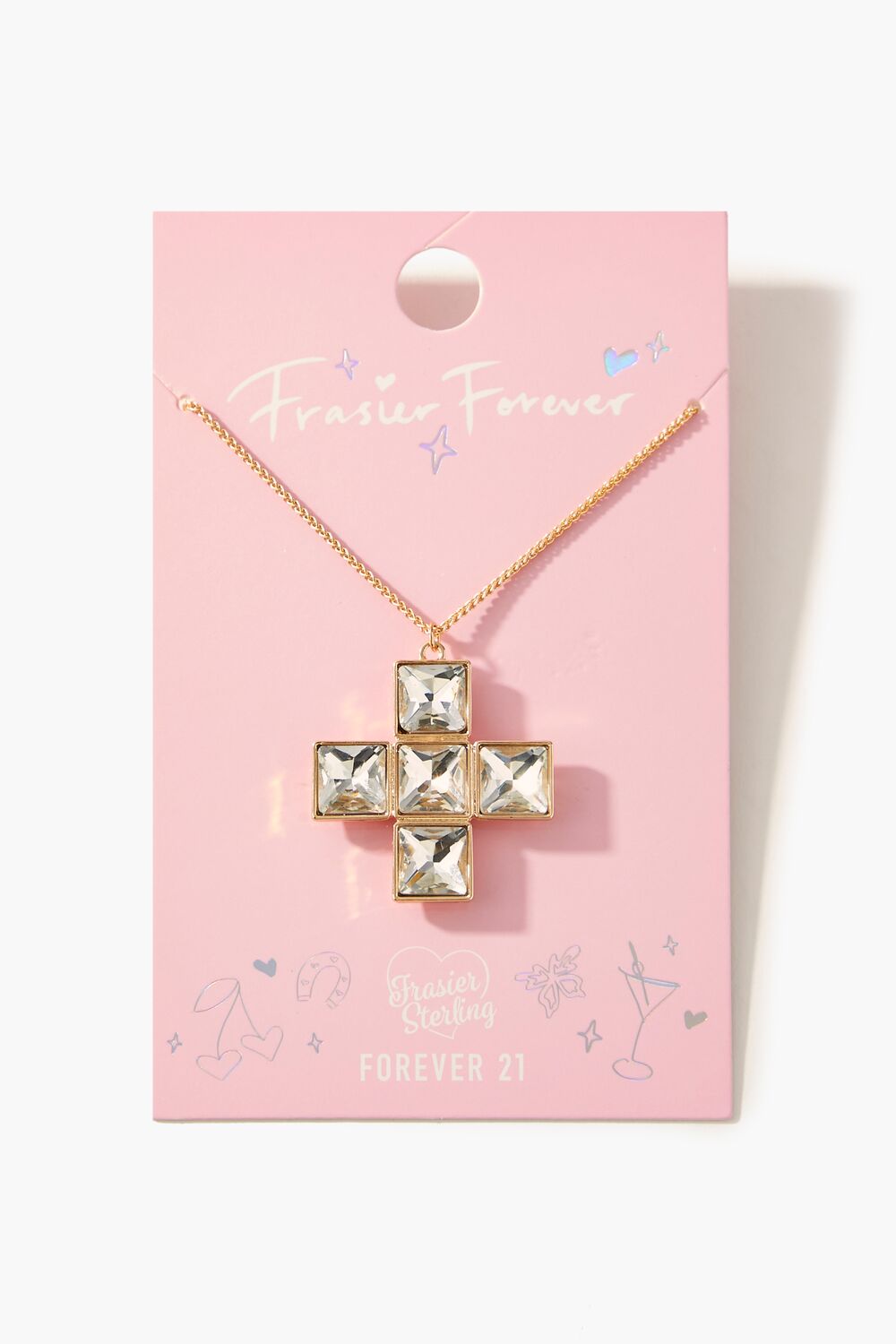 From our Frasier Sterling x Forever 21 collection. this curb chain necklace features a cross pendant with faux gem embellishments and a lobster clasp closure.