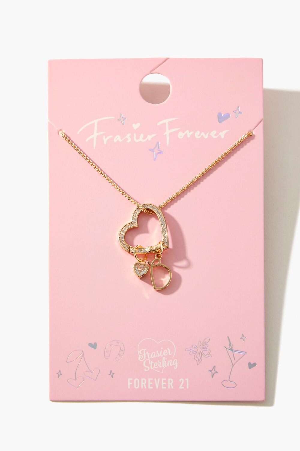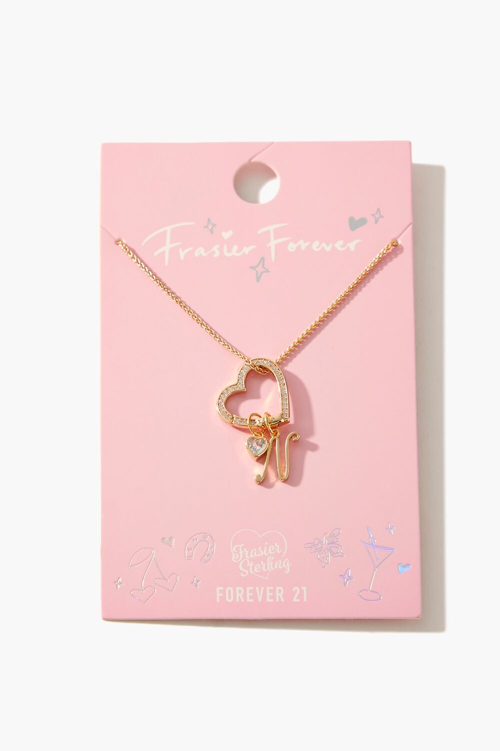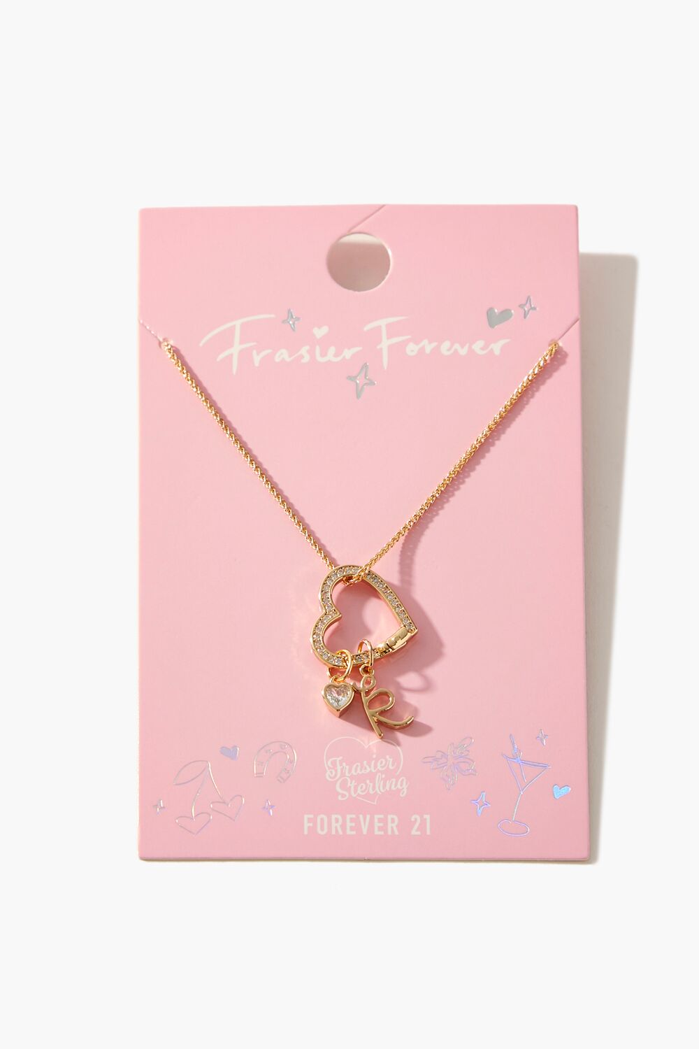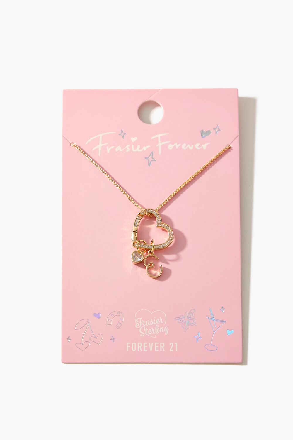 From our Frasier Sterling x Forever 21 collection. this high-polish choker necklace features a curb chain. heart and cursive initial charms. rhinestone embellishments. and a lobster clasp closure.