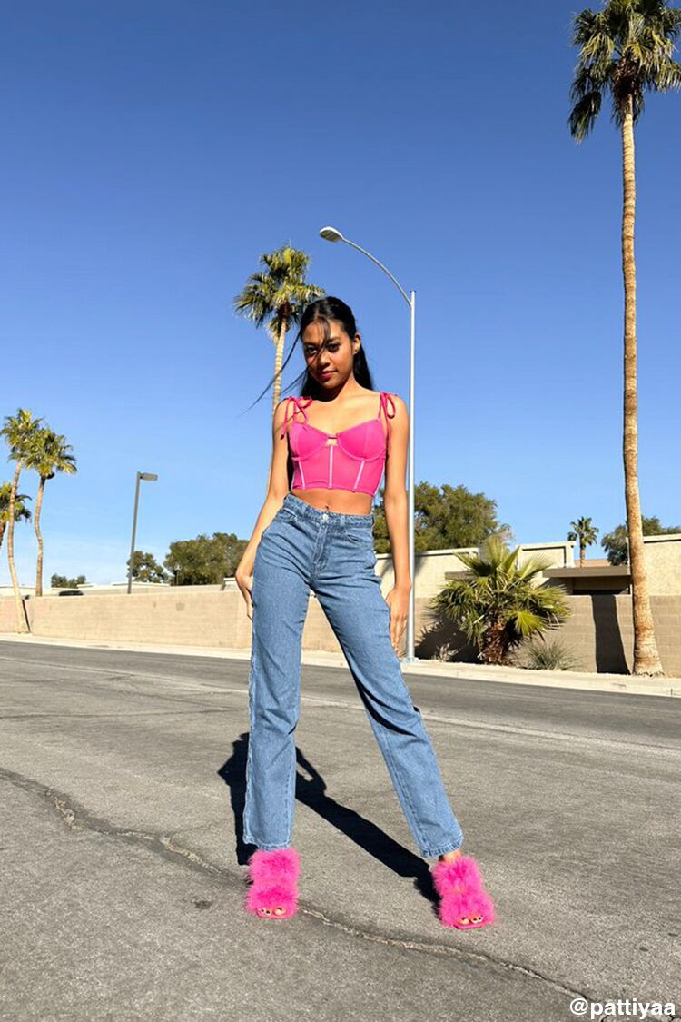 A mesh bustier top featuring a lined bust. partial sheer construction. front keyhole. underwire. V-neckline. self-tie cami straps. straight-cut back. and hook-and-eye back closures.