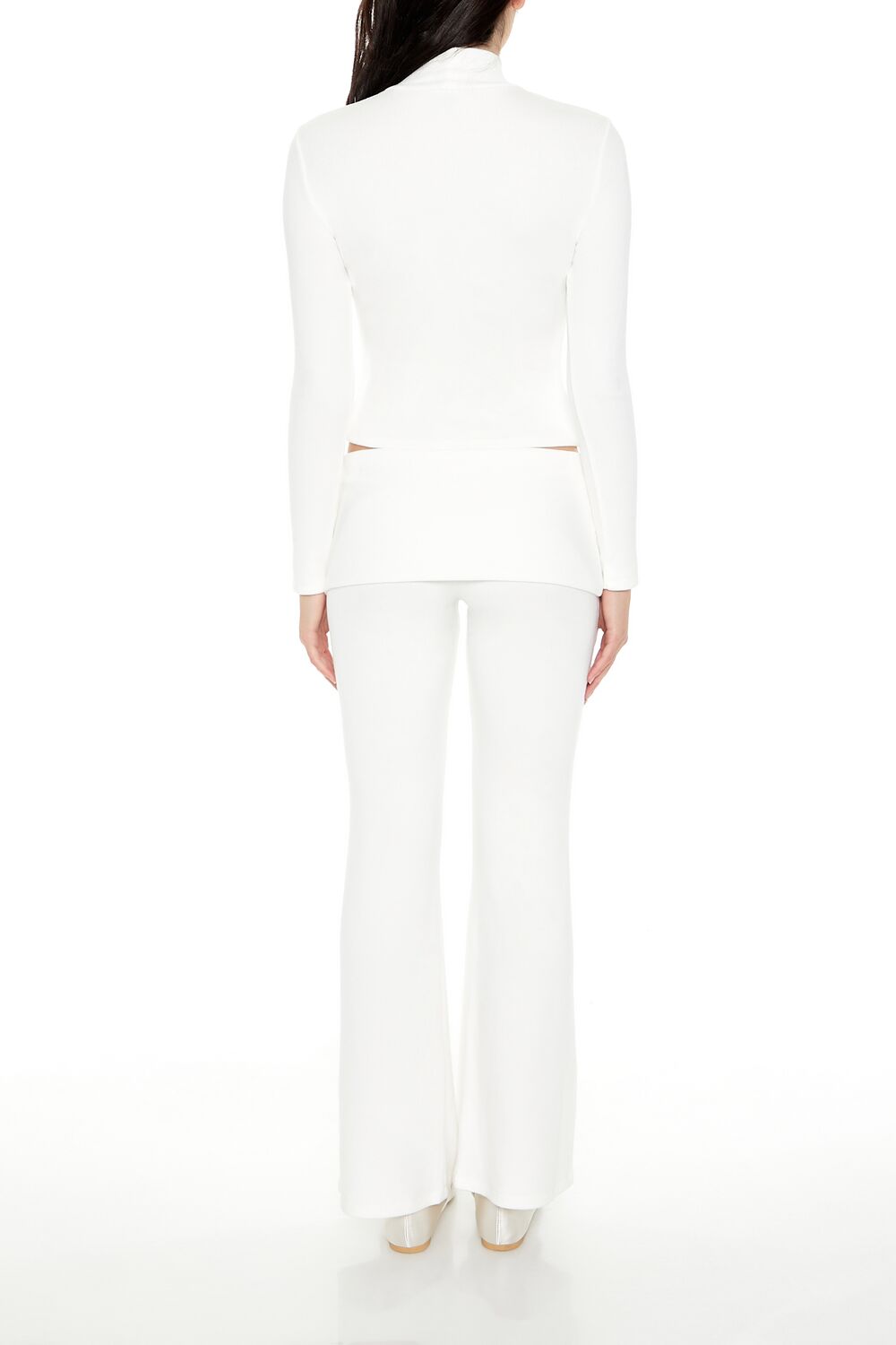 A pair of knit pants featuring a foldover mid-rise waist and flare leg.
