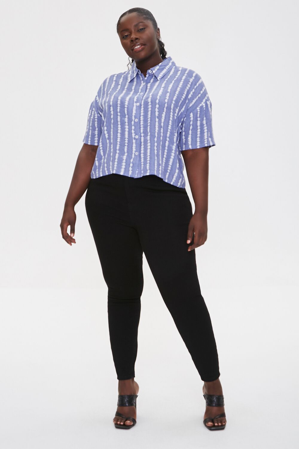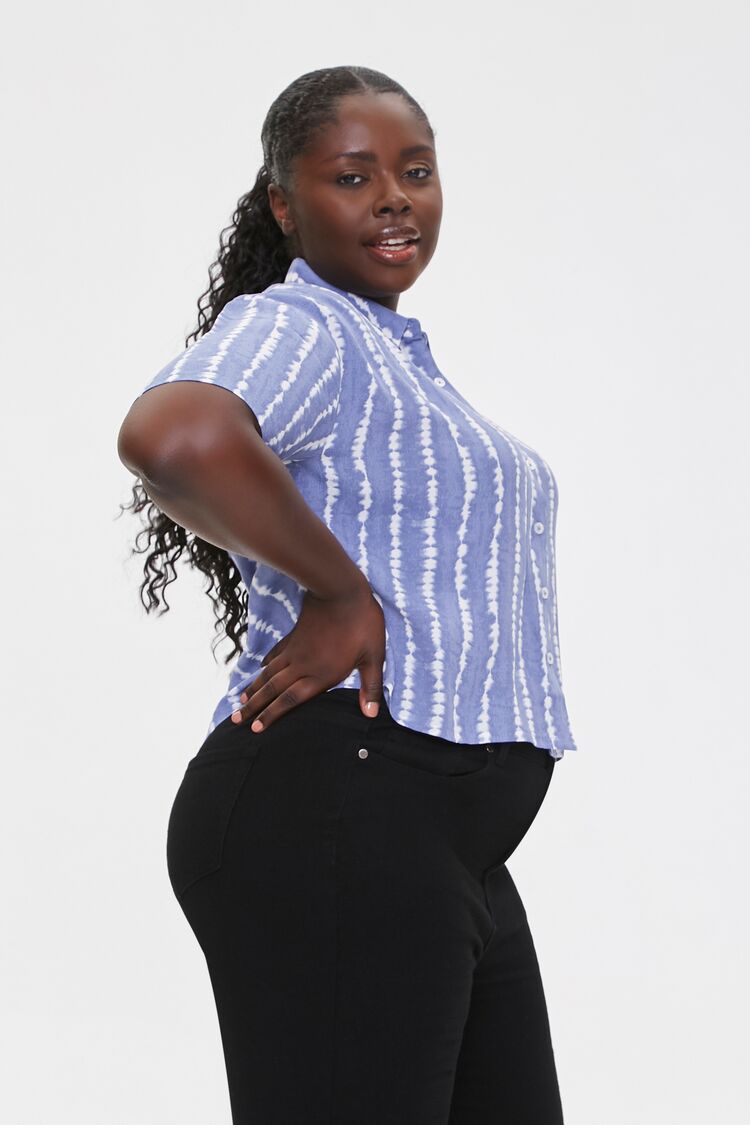 Forever 21+ – A woven shirt featuring an allover abstract striped print. button front. basic collar. and dropped short sleeves.