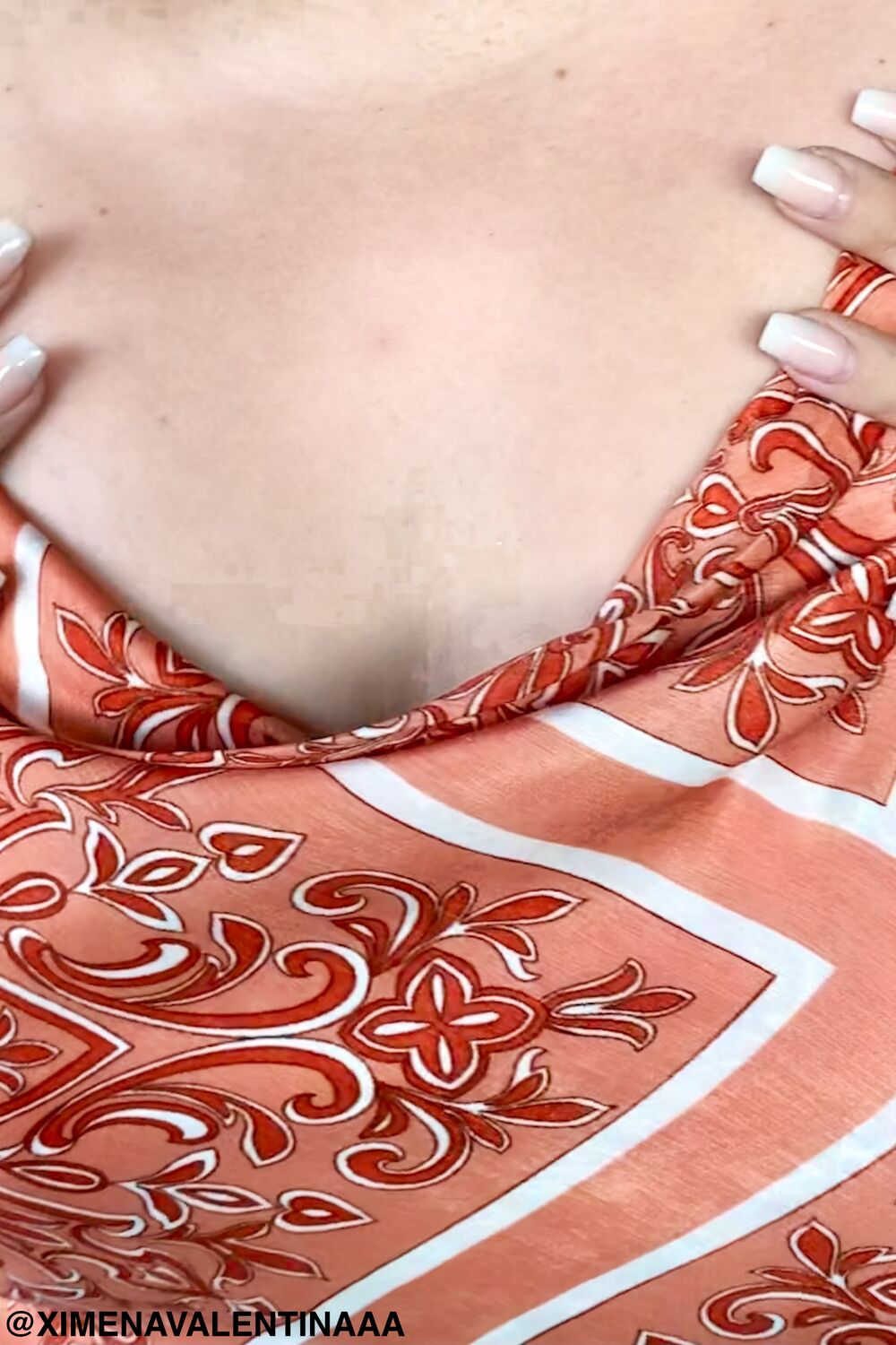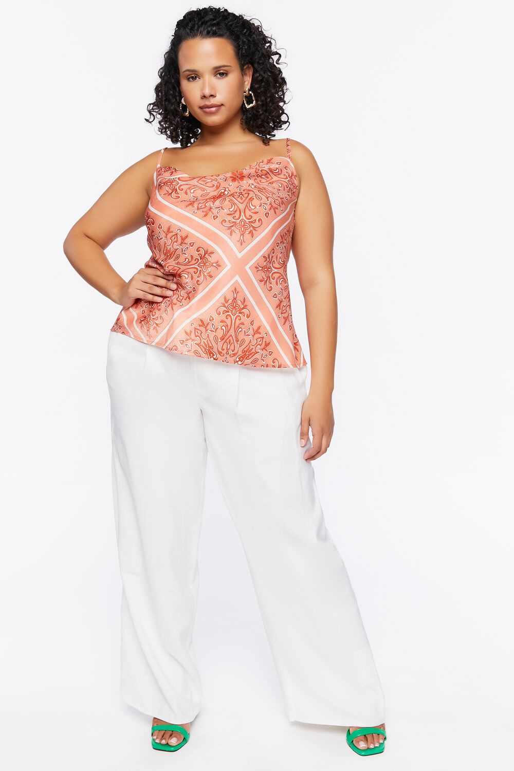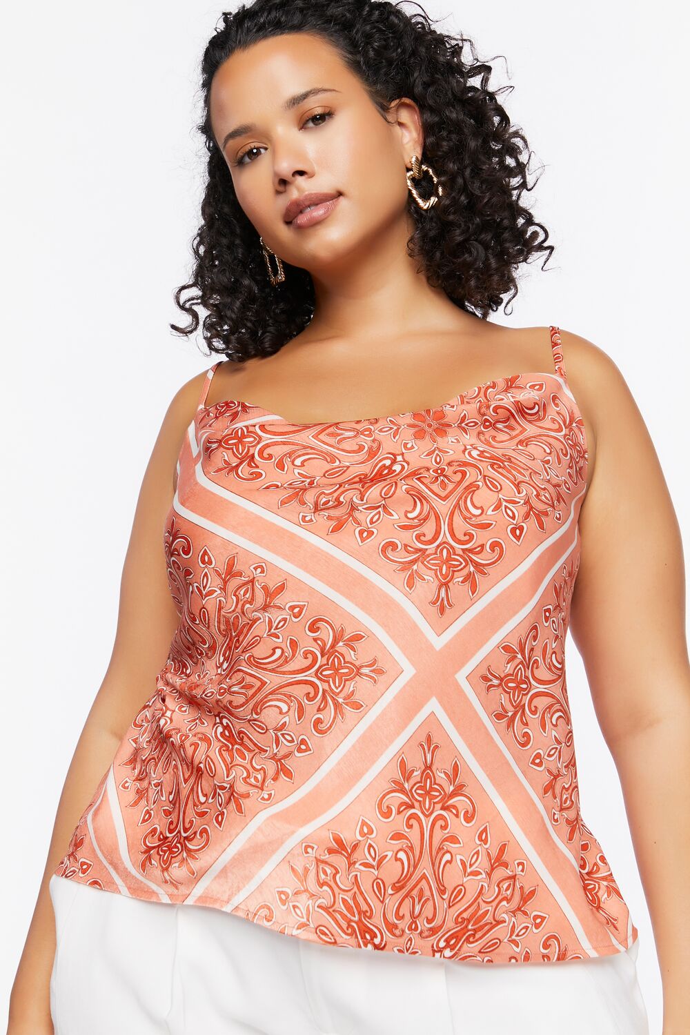 Forever 21+ – A satin cami featuring an allover baroque print. cowl neck. straight-cut back. and adjustable straps.