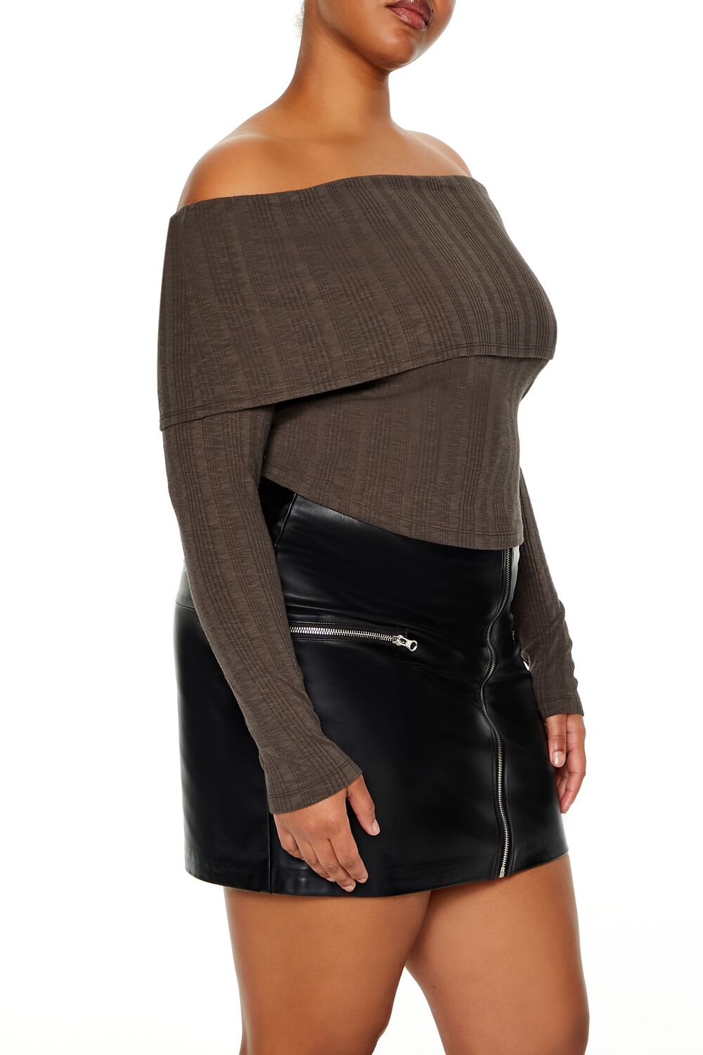 Forever 21+ – A ribbed knit top featuring a foldover off-the-shoulder neckline. long sleeves. and semi-cropped hem.