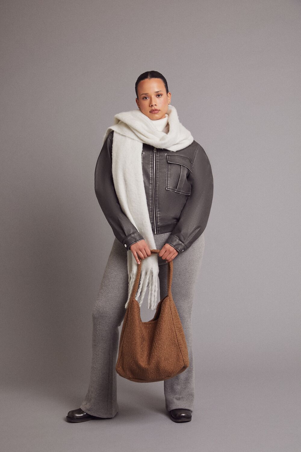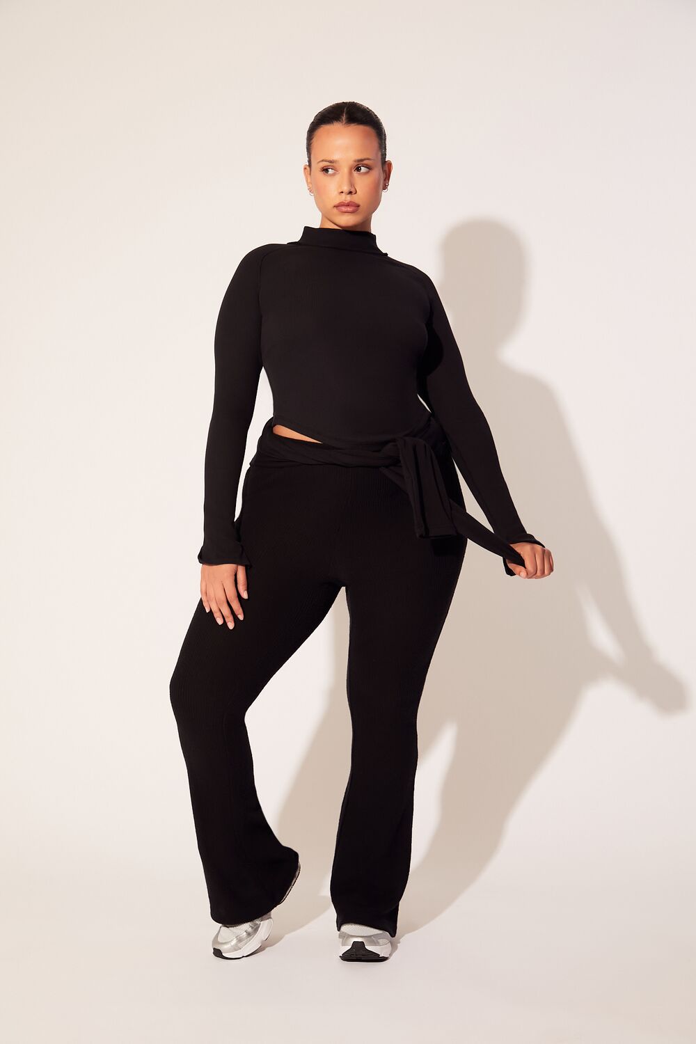 Forever 21+ – A pair of ribbed knit pants featuring a flare leg and high-rise stretchy waistband.