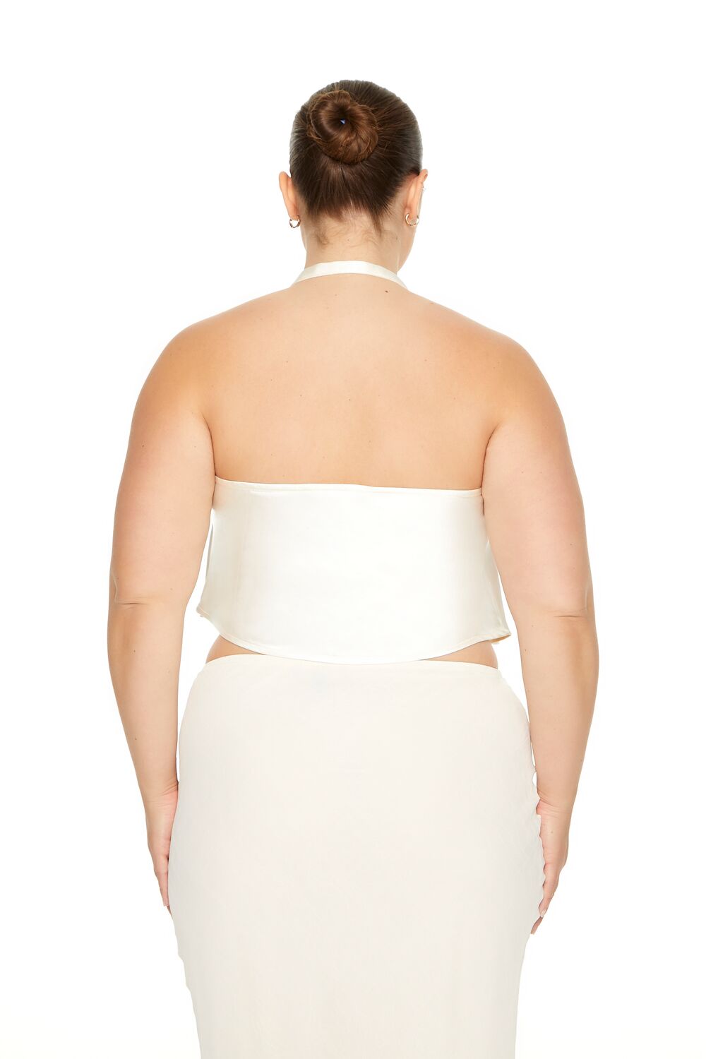 Forever 21+ – A satin top featuring a halter cowl neckline. cropped hem. and an open back.