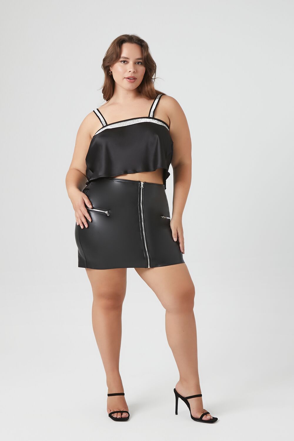 Be the first to review “Plus Size Satin Rhinestone-Trim Crop Top”