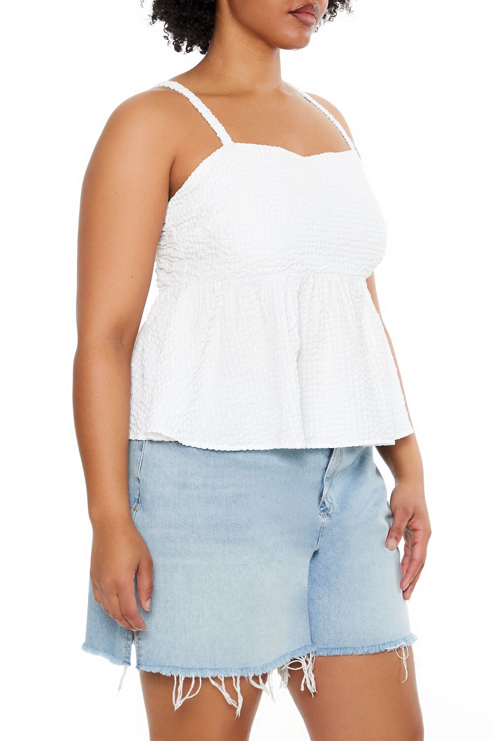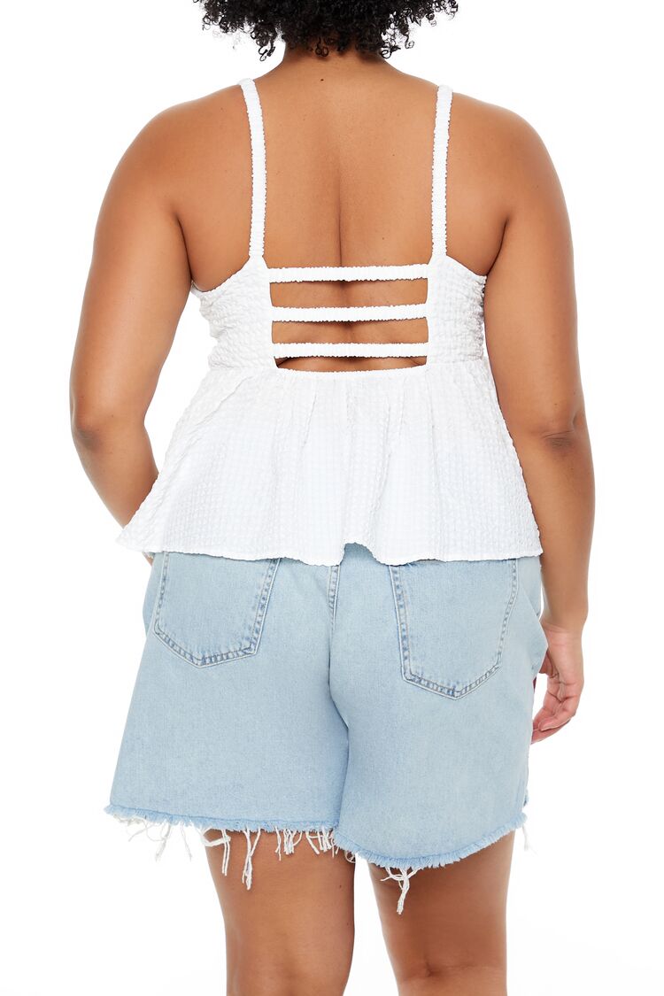 Forever 21+ – A seersucker top featuring a sweetheart neckline. caged back. and a flounce hem.